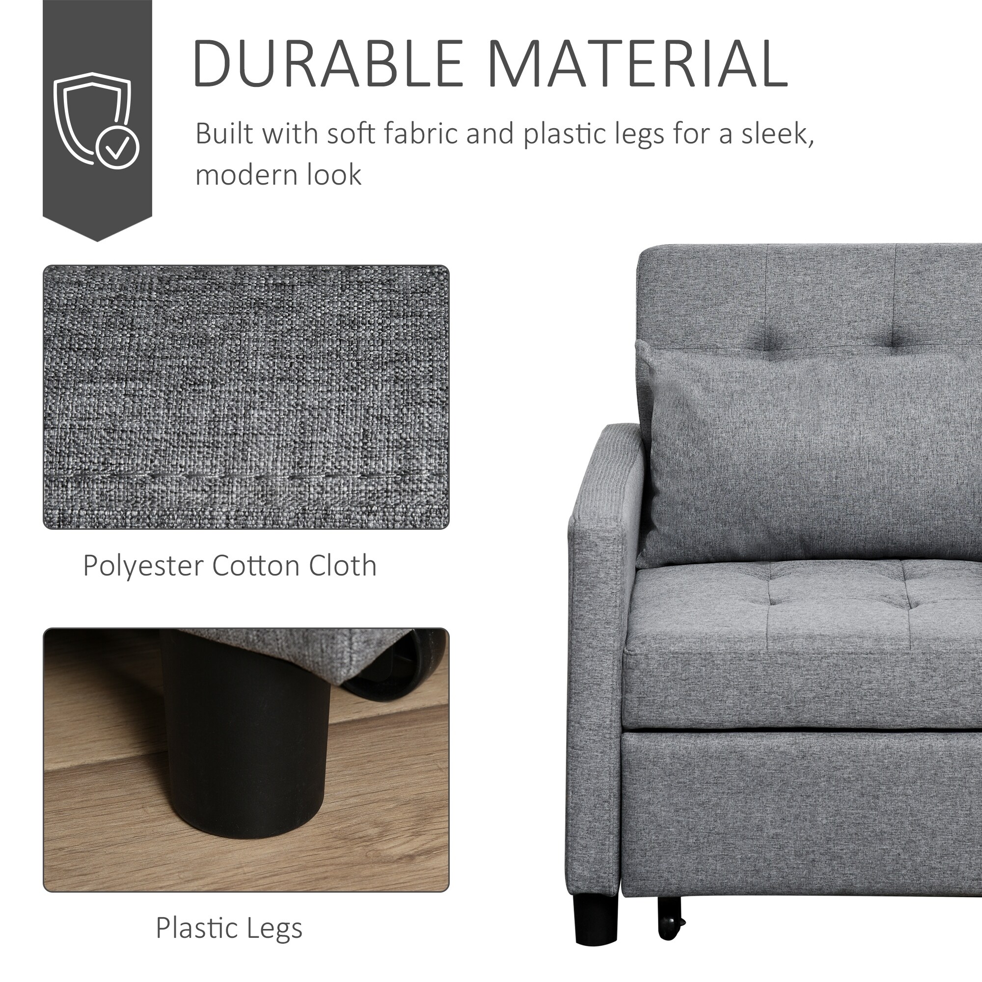 Convertible Sofa Lounger Chair Bed Multi-Functional Sleeper Recliner with Tufted Upholstered Fabric