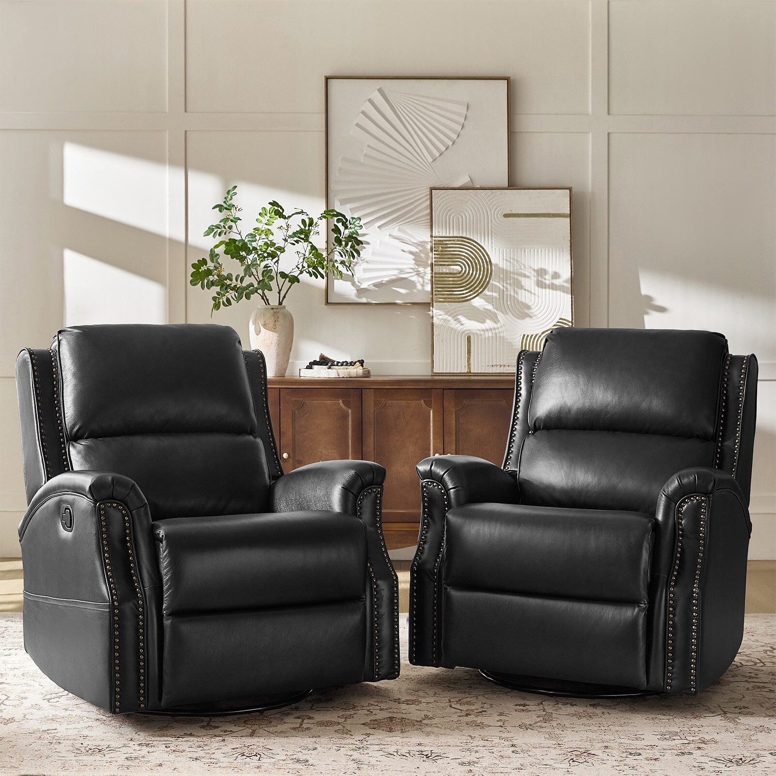 Modern Swivel Glider Recliner Chair with 360-Degree Rotation, Solid Wood Base