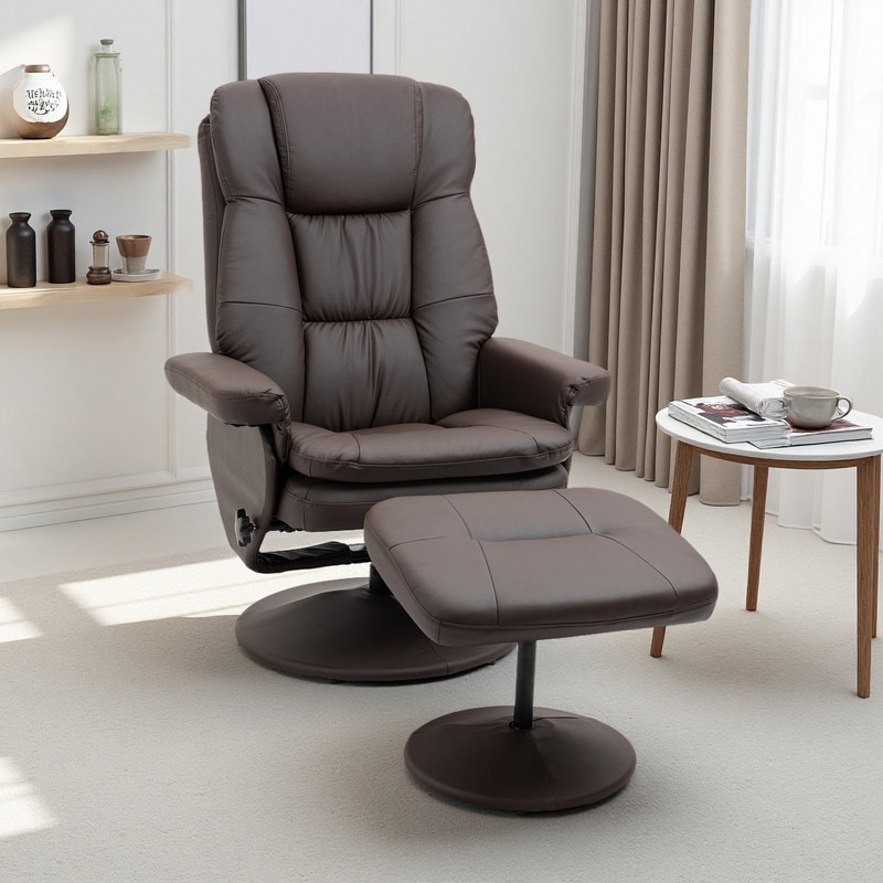 PU Leather Swivel Reclining Chair with Footrest for Living Room, Bedroom and Home Office, Recliner and Ottoman Set