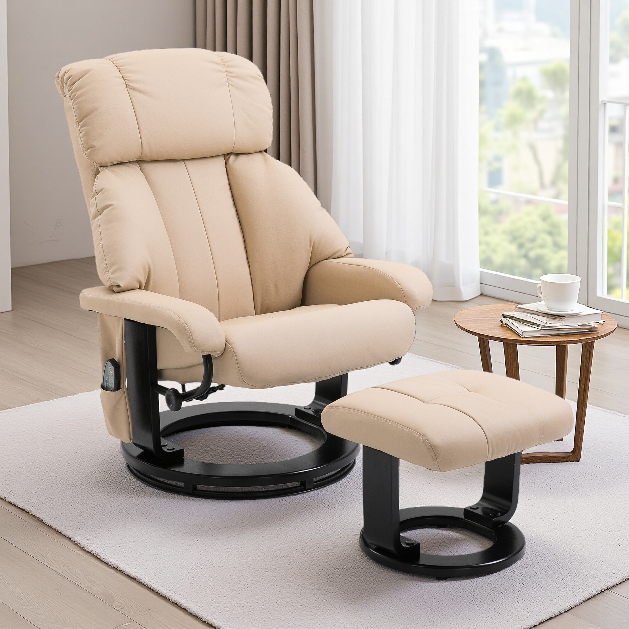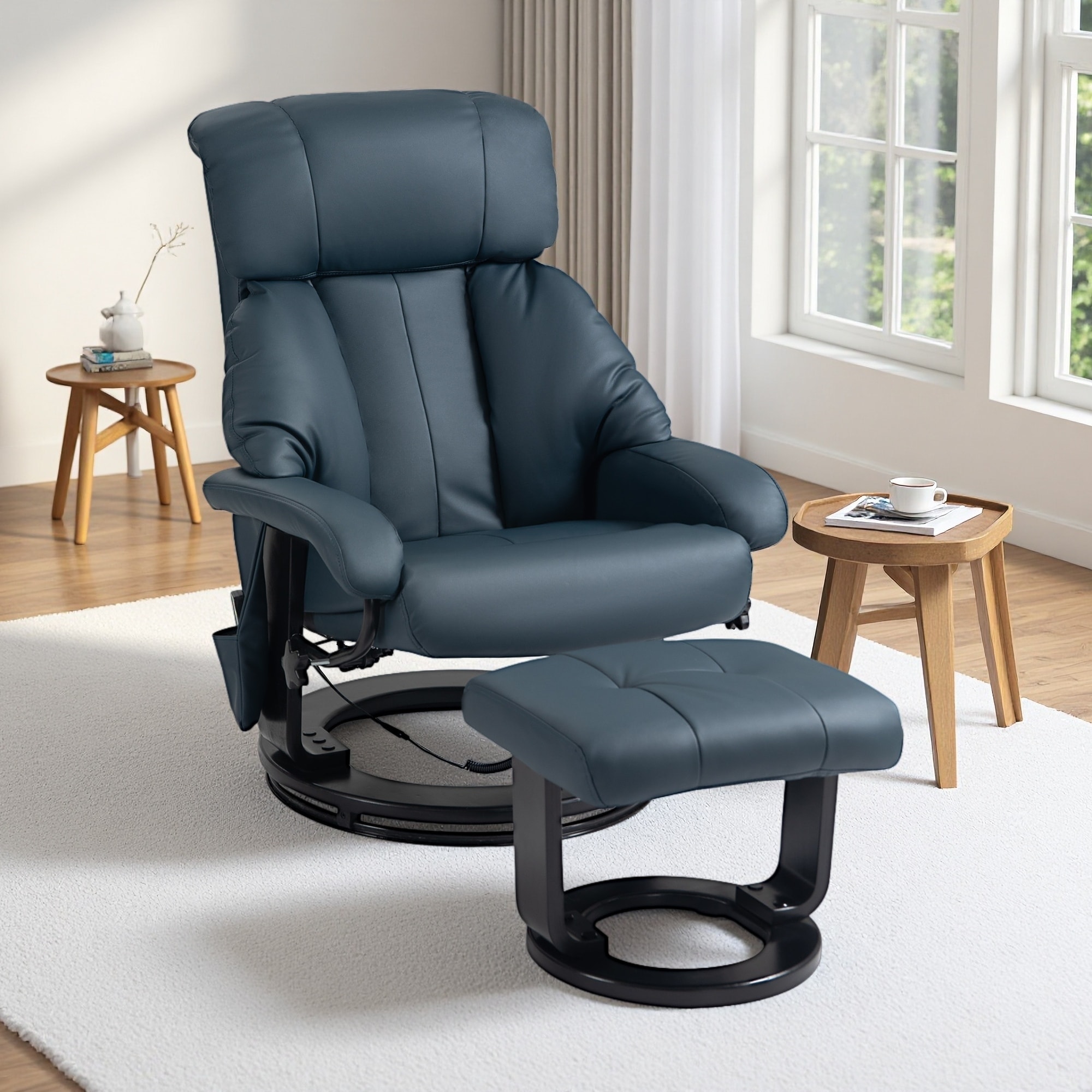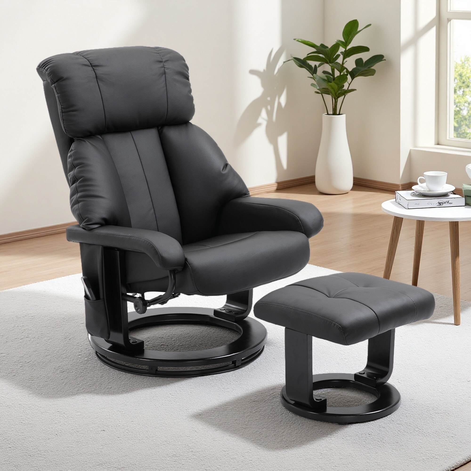 PU Leather Massage Recliner Chair with Ottoman, 360° Swivel Recliner and Footstool, Side Pocket and Remote Control