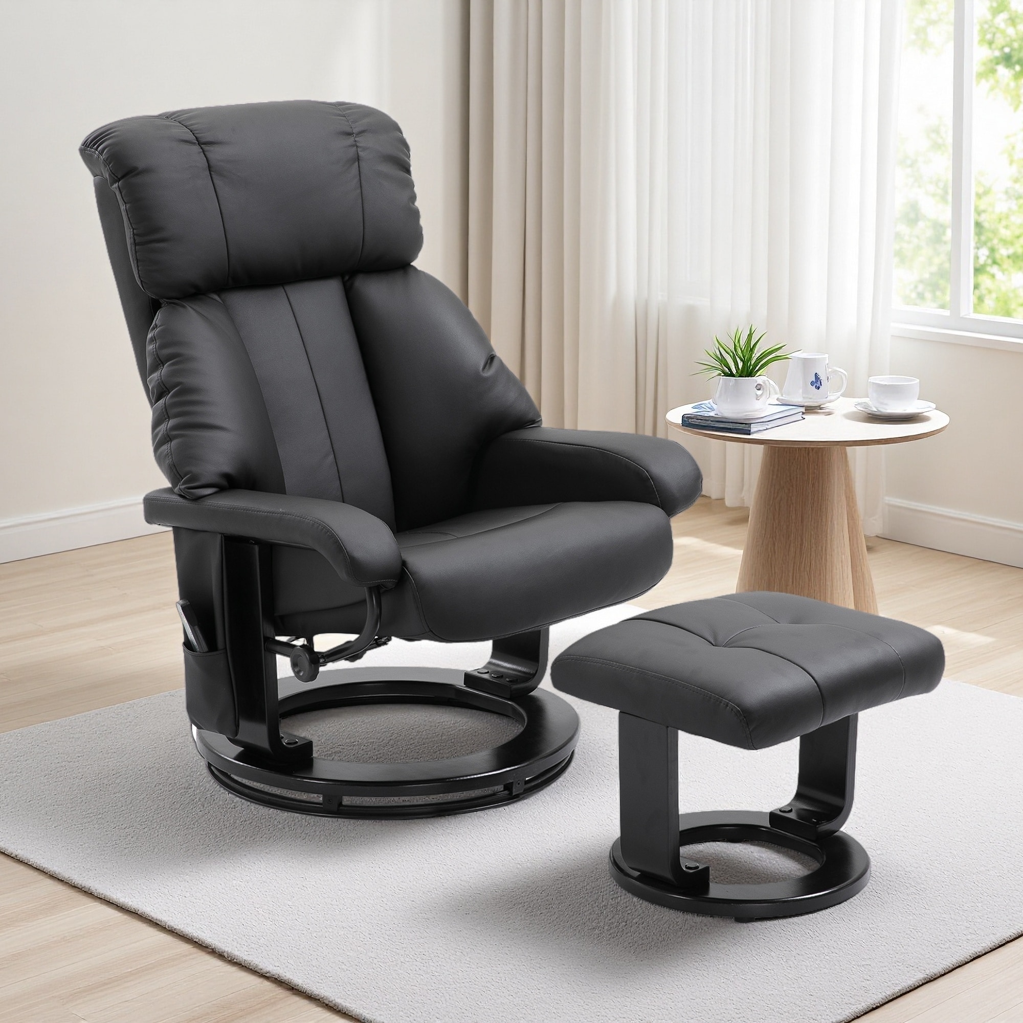 Massage Recliner Chair with Ottoman, 360° Swivel Recliner and Footstool,PU Leather Reclining Chair