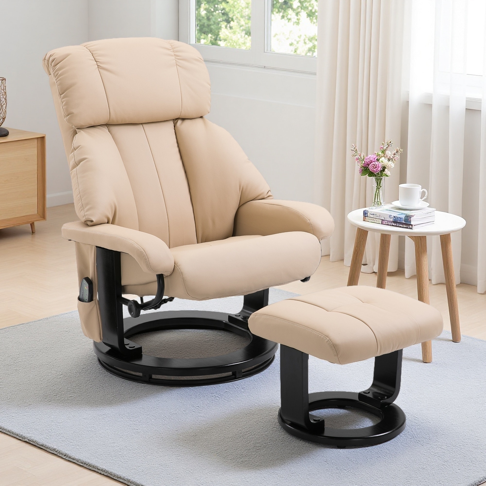 PU Leather Massage Recliner Chair with Ottoman, 360° Swivel Recliner and Footstool, Side Pocket and Remote Control