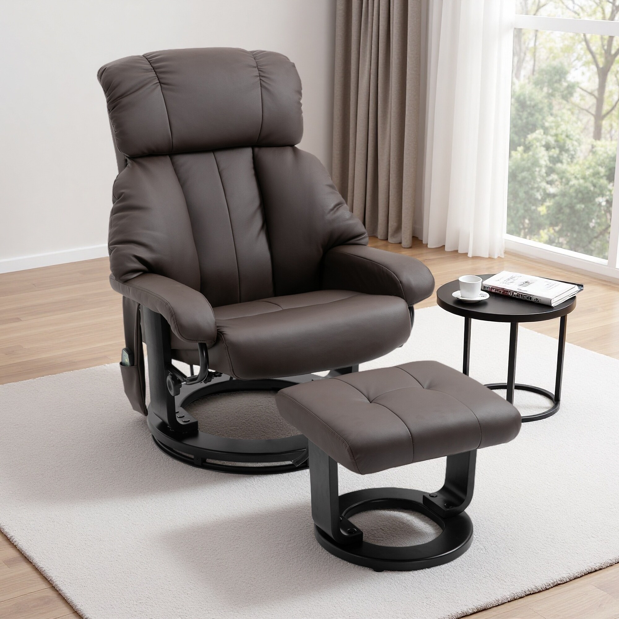 PU Leather Massage Recliner Chair with Ottoman, 360° Swivel Recliner and Footstool, Side Pocket and Remote Control