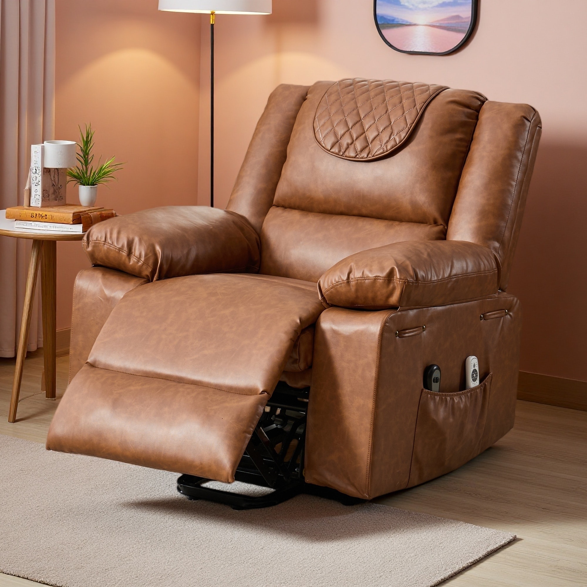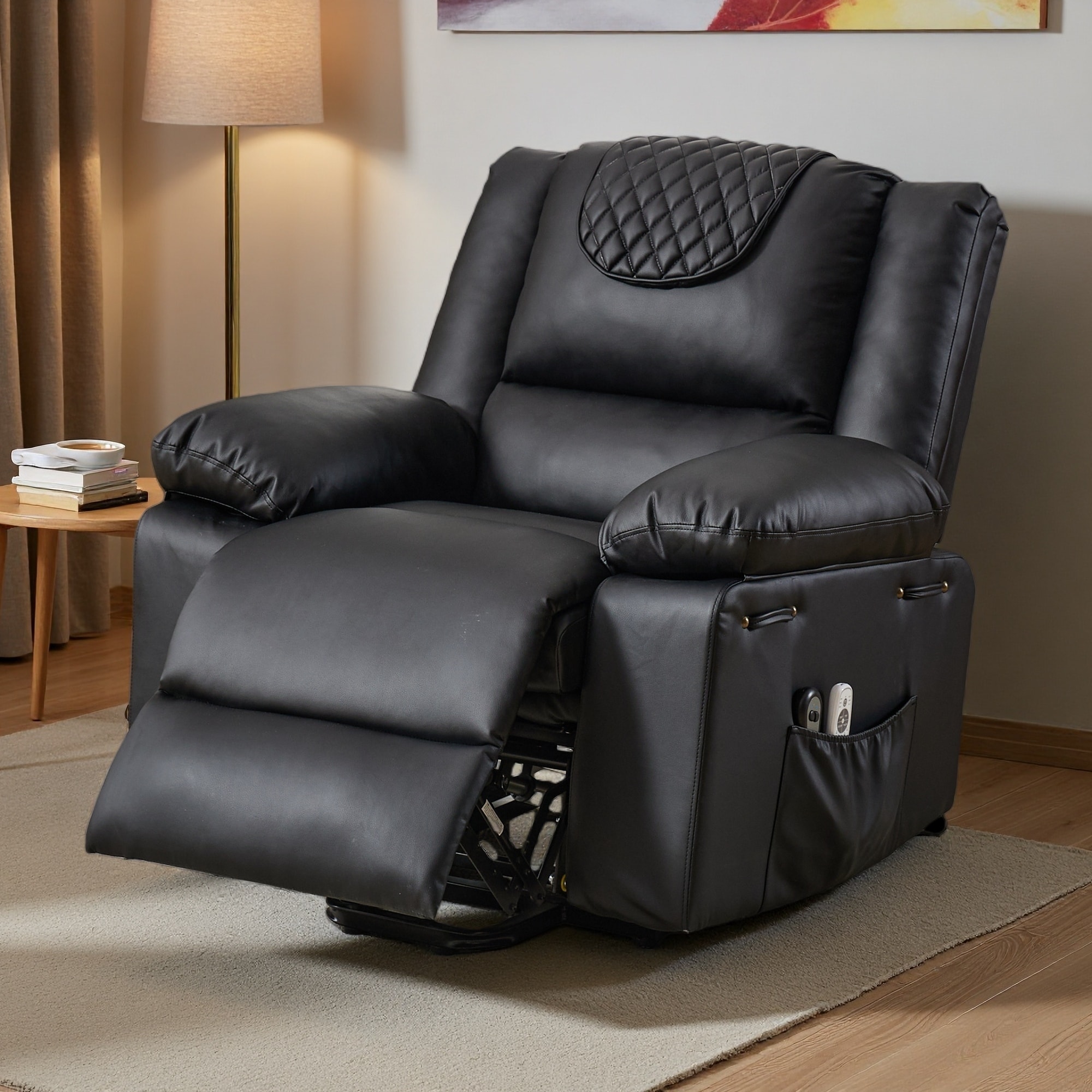 Oversized PU Leather Power Lift Recliner Chair with Dual OKIN Motors, 180° Lay Flat, Multi-Function Massage, and Cup Holders