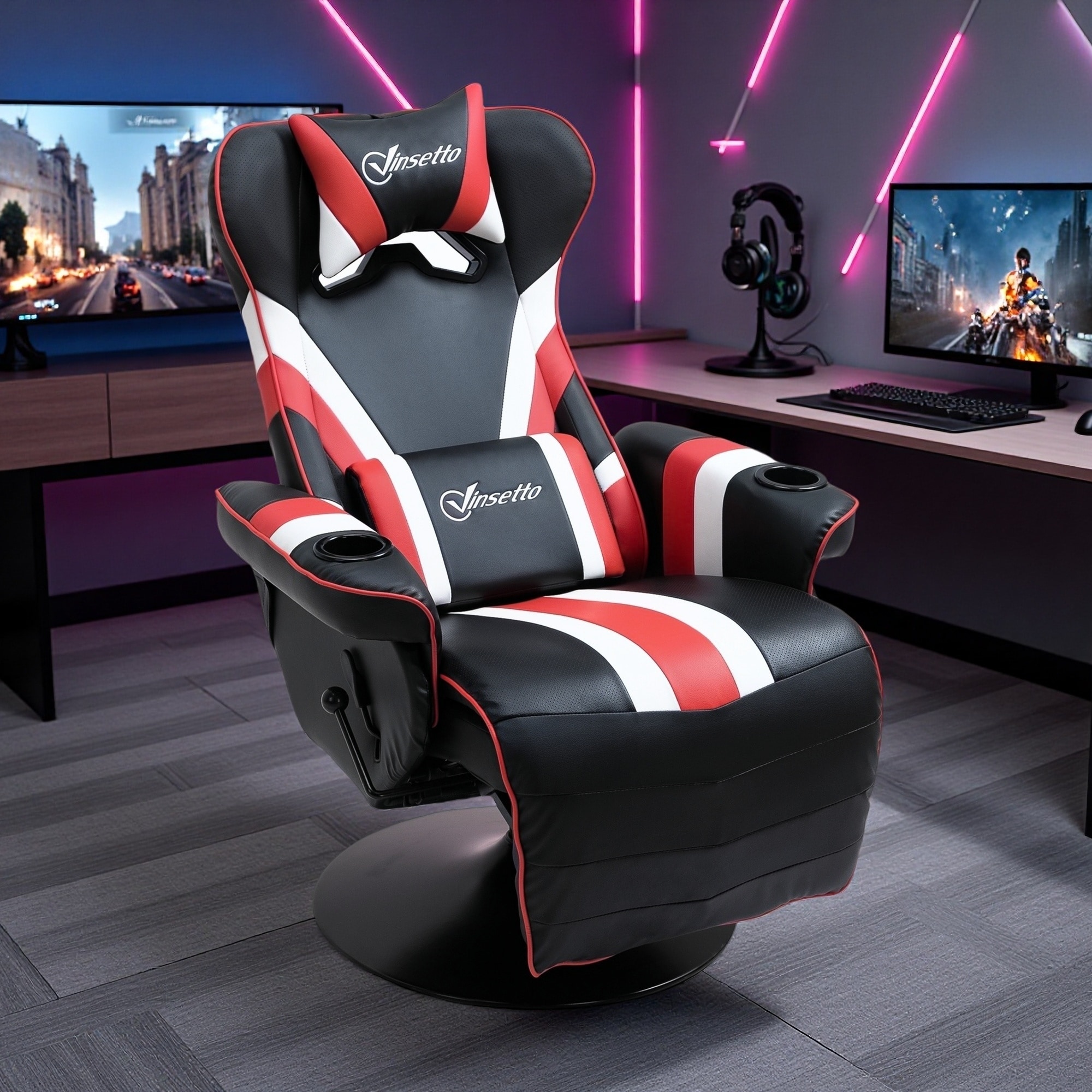Steel Reclining Gaming Chair with Lumbar Support, Footrest & Cup Holders