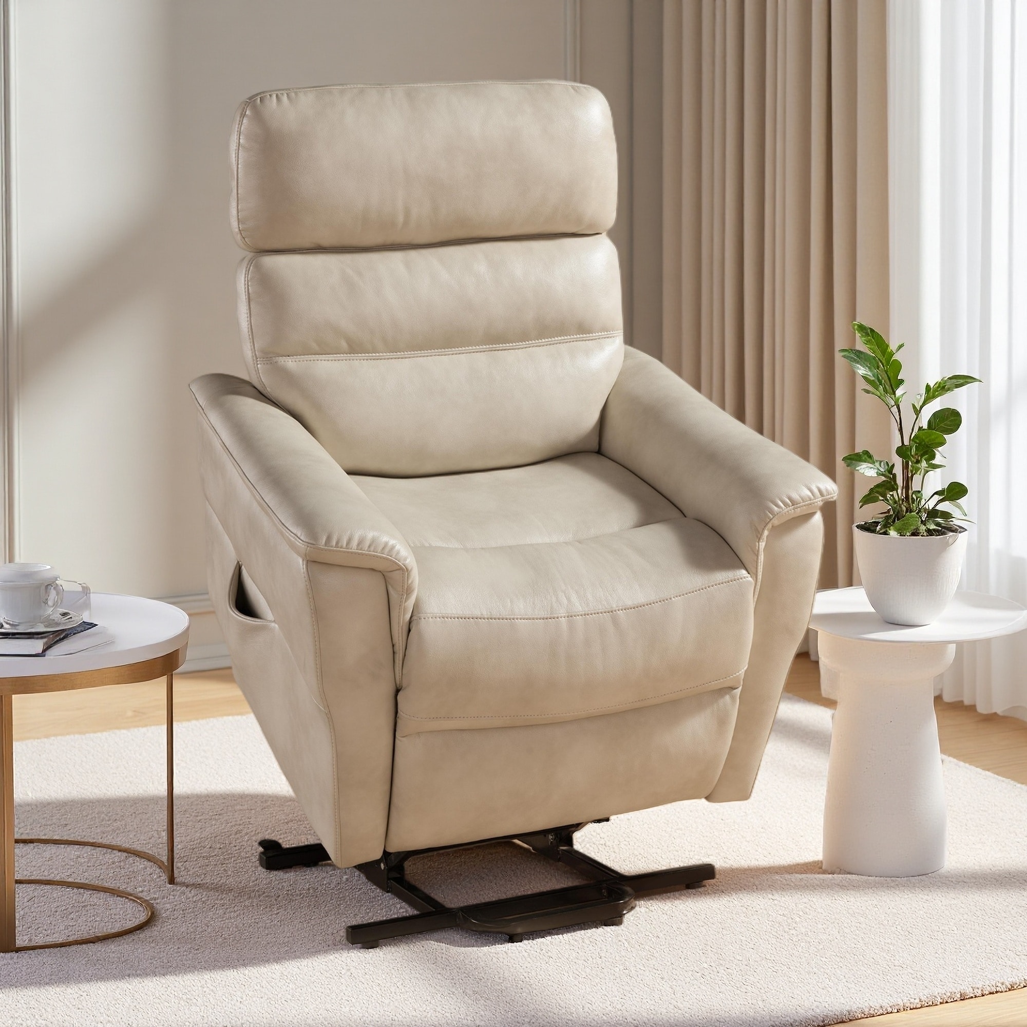 Power Lift Recliner Chair with Remote, Side Pocket & Overstuffed Pillow