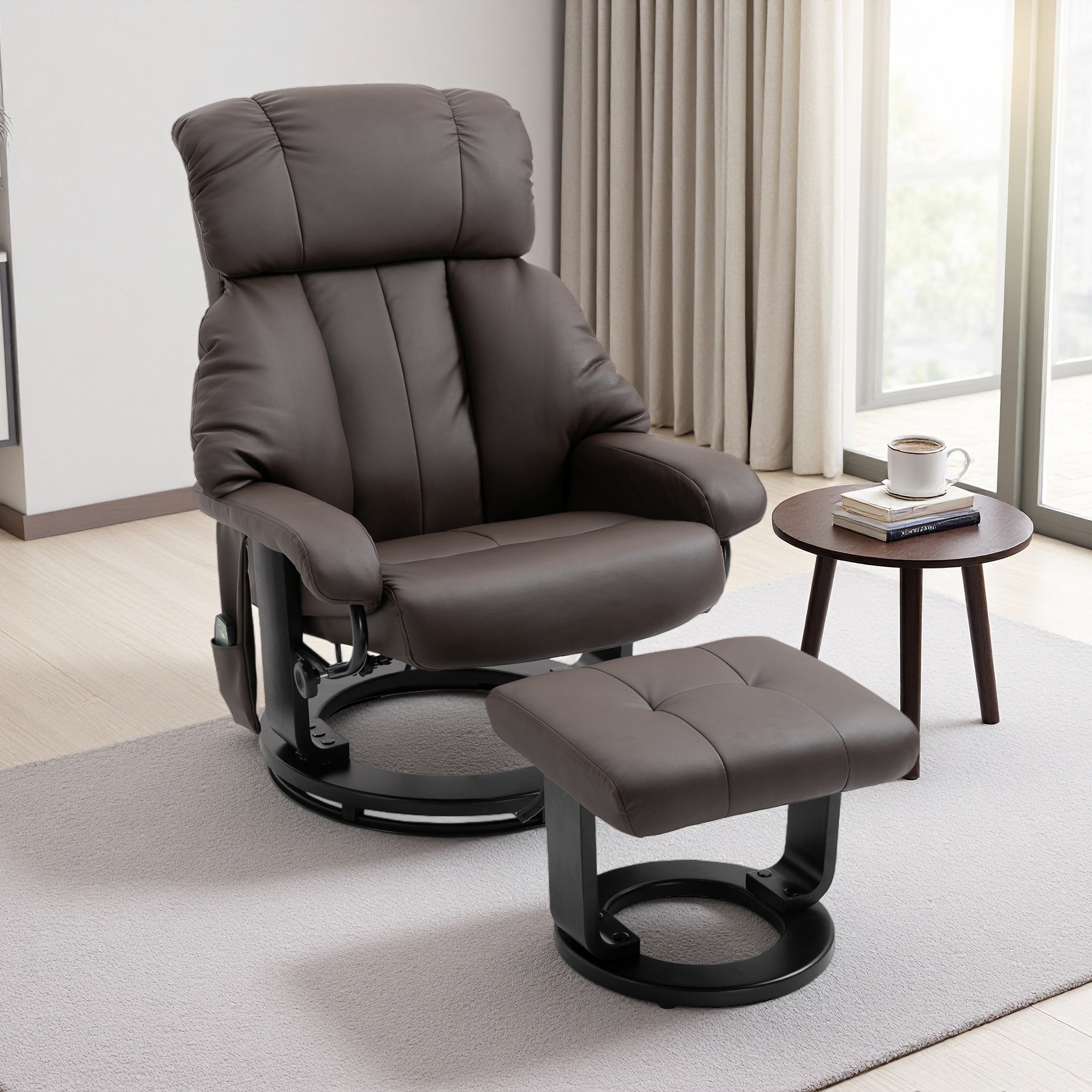 PU Leather Massage Recliner Chair with Ottoman, 360° Swivel & Remote