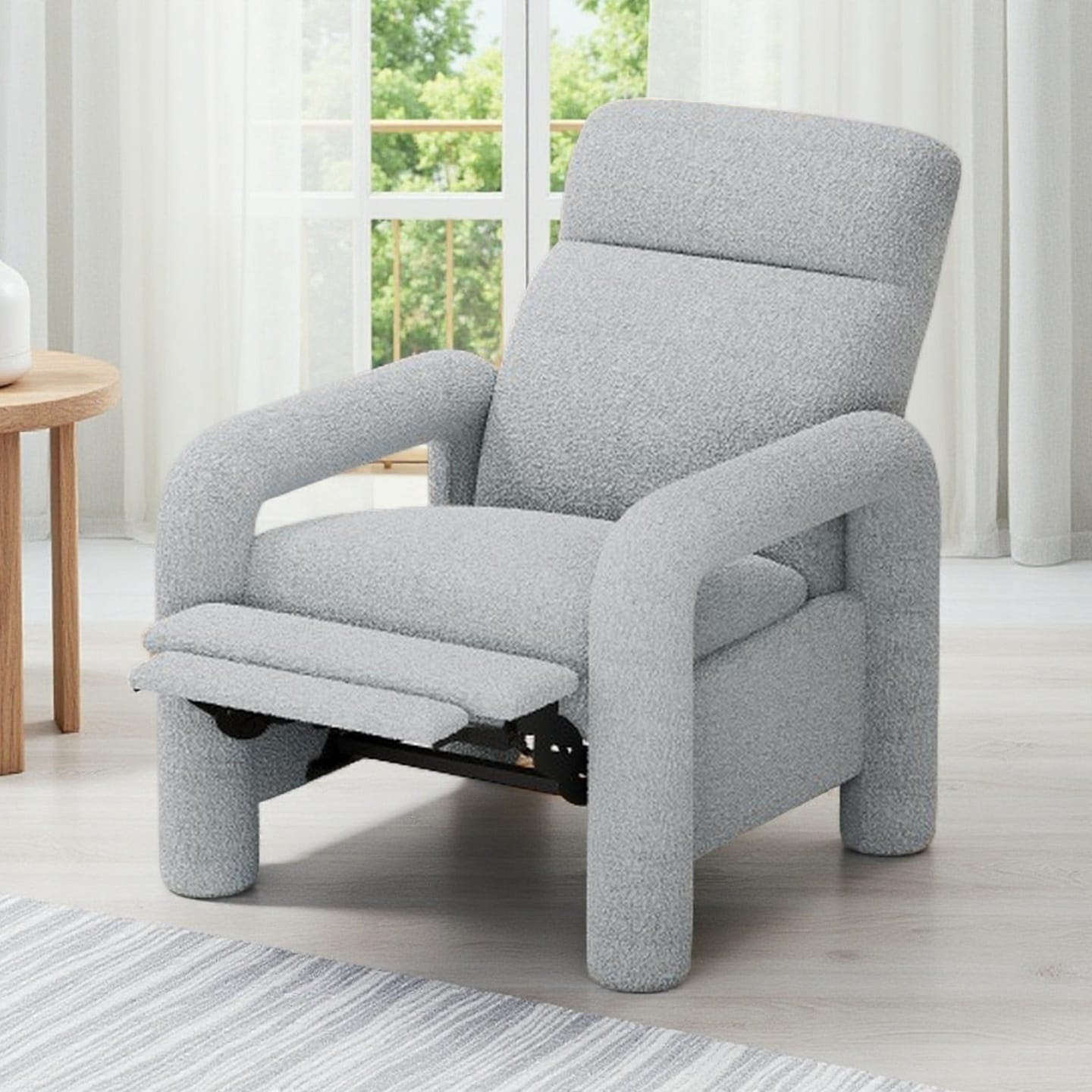 Light Grey Teddy Fleece Push Back Recliner Chair, Upholstered Single Sofa with Adjustable Backrest and Pocket Spring Seat