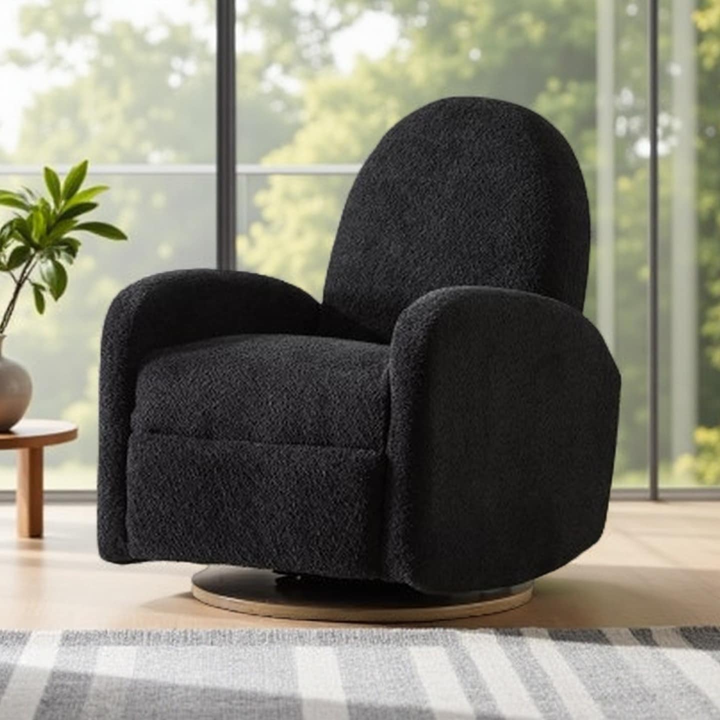 360° Swivel Glider Recliner Chair, Modern Upholstered Rocking Armchair with Wood Base and Smooth Reclining Function