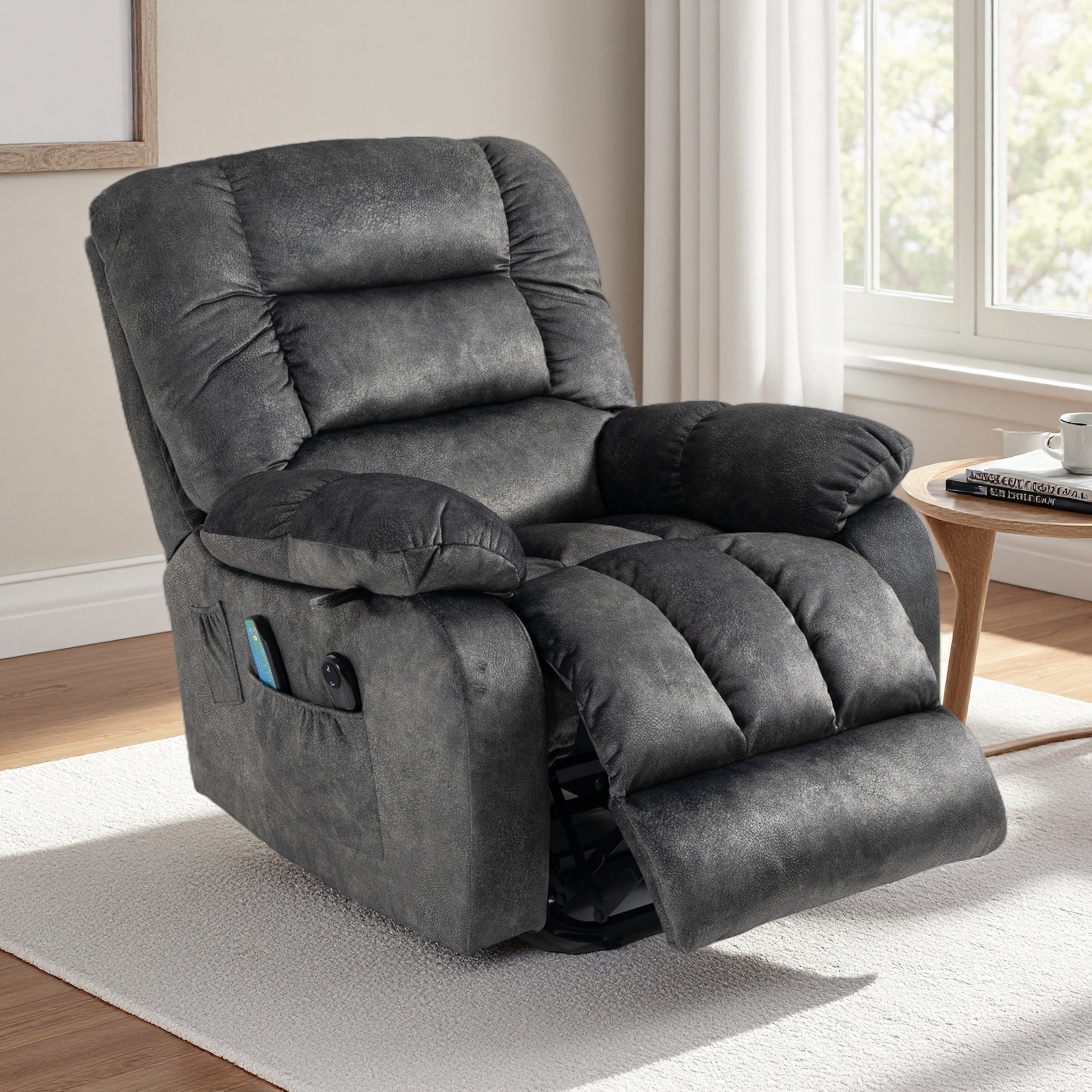 Heat Massage Manual Recliner Chair with Rocker and Swivel in Fabric for Living Room