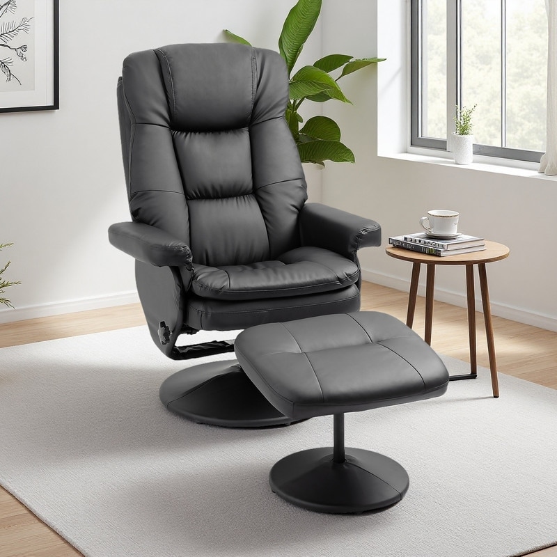 PU Leather Swivel Reclining Chair with Footrest for Living Room, Bedroom and Home Office, Recliner and Ottoman Set