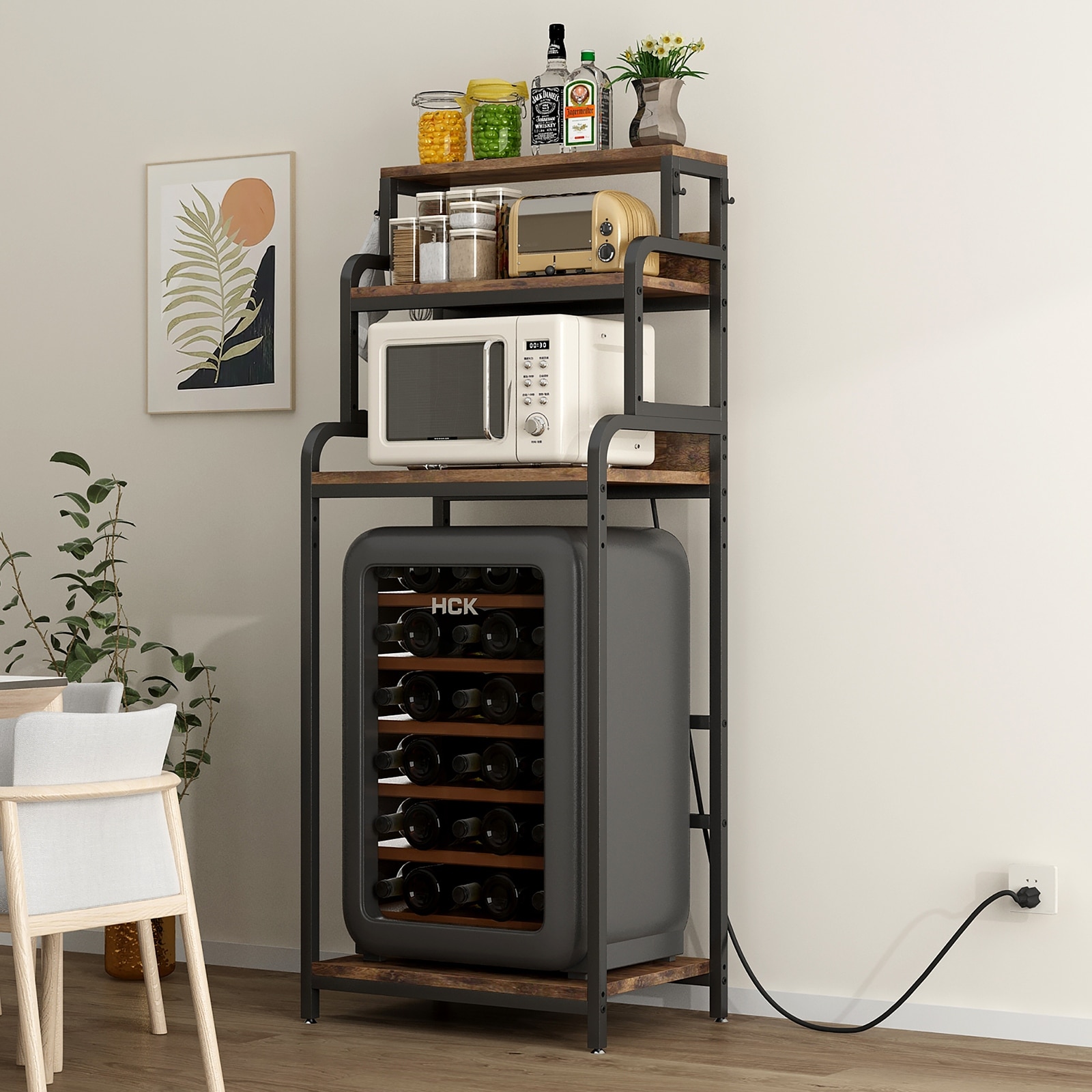 4-Tier Mini Fridge Stand with Storage, Mini Fridge Cabinet with Storage, Bakers Rack, Microwave Oven Stand with Storage