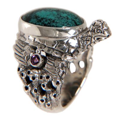 'Teal Turtle' - Sterling Silver and Reconstituted Turquoise Ring