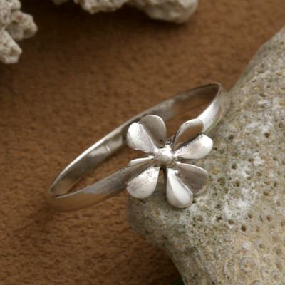 Gentle Rose,'Minimalist Rose-Themed Sterling Silver Cocktail Ring'
