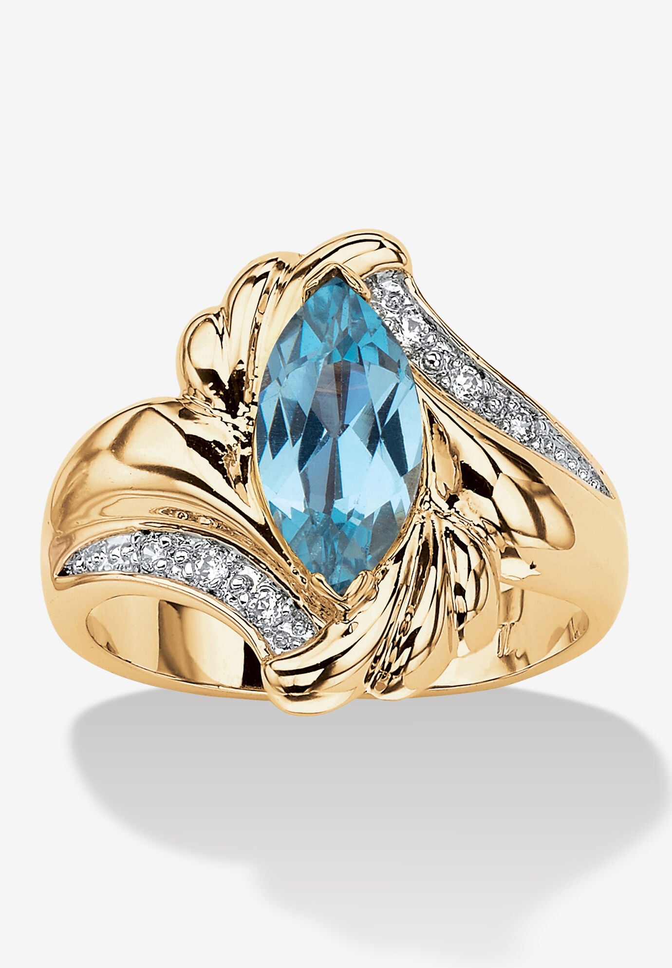 Women's 2.05 Tcw Marquise-Cut Aqua Cubic Zirconia Gold-Plated Bypass Cocktail Ring by PalmBeach Jewelry in Gold (Size 10)