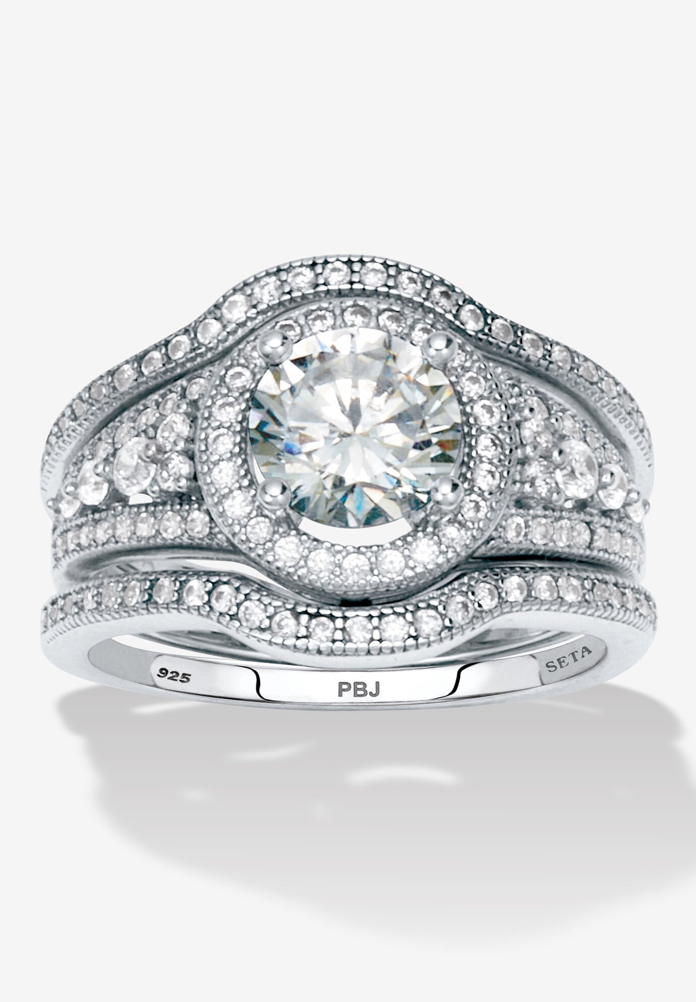 Women's 2.18 Tcw Round Cut Cubic Zirconia Platinum-Plated Sterling Silver Bridal Set by PalmBeach Jewelry in Silver (Size 7)