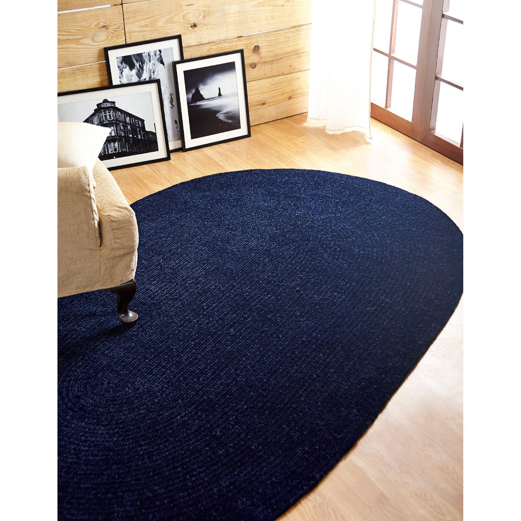 Better Trends Chenille Solid Braid Collection Reversible Indoor Area Utility Rug in Vibrant Colors, by Better Trends in Navy (Size 22X40 OVAL)