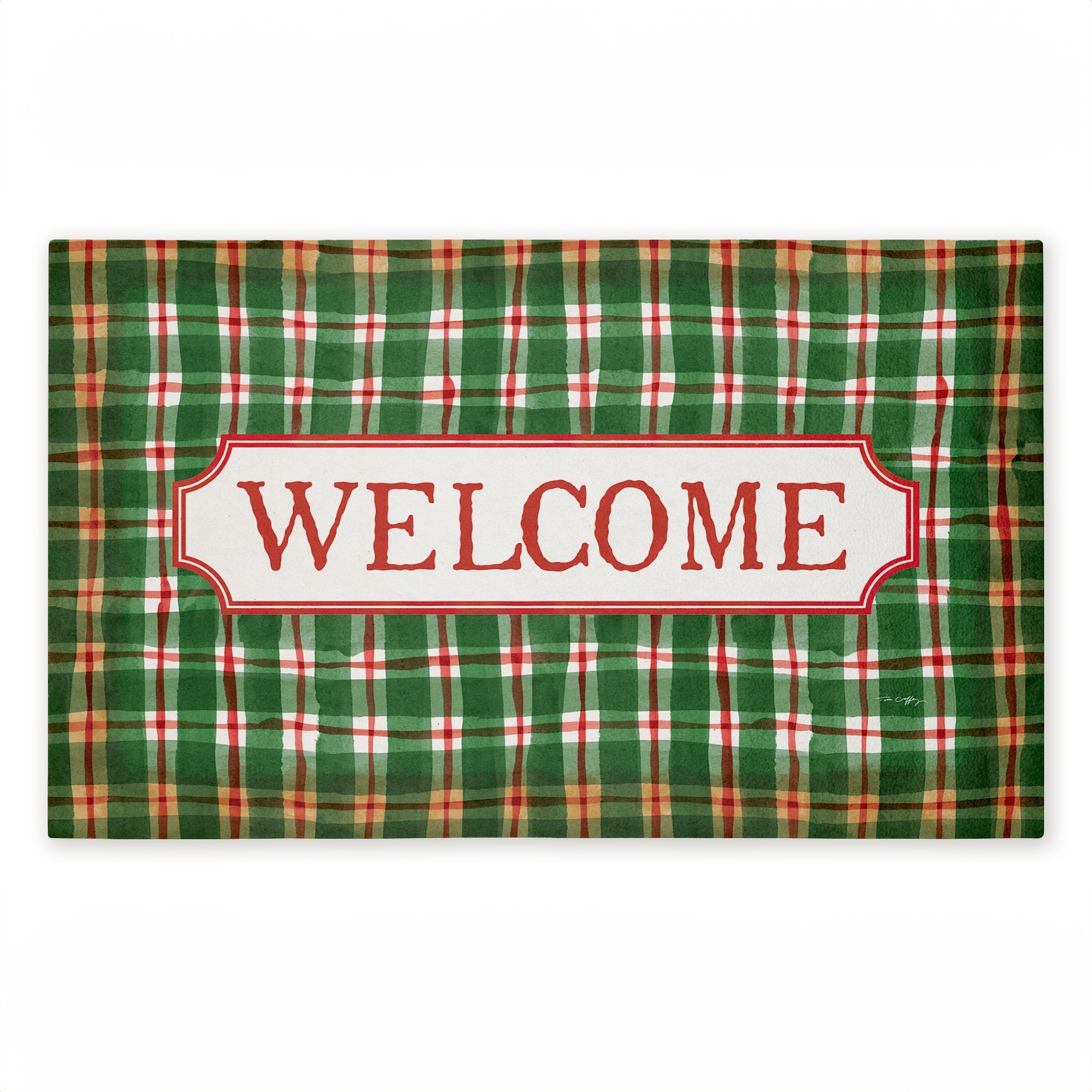 Stupell Winter Plaid Cabin Welcome Printed Outdoor Door Mat, design by Tim Coffey, 18"x30"