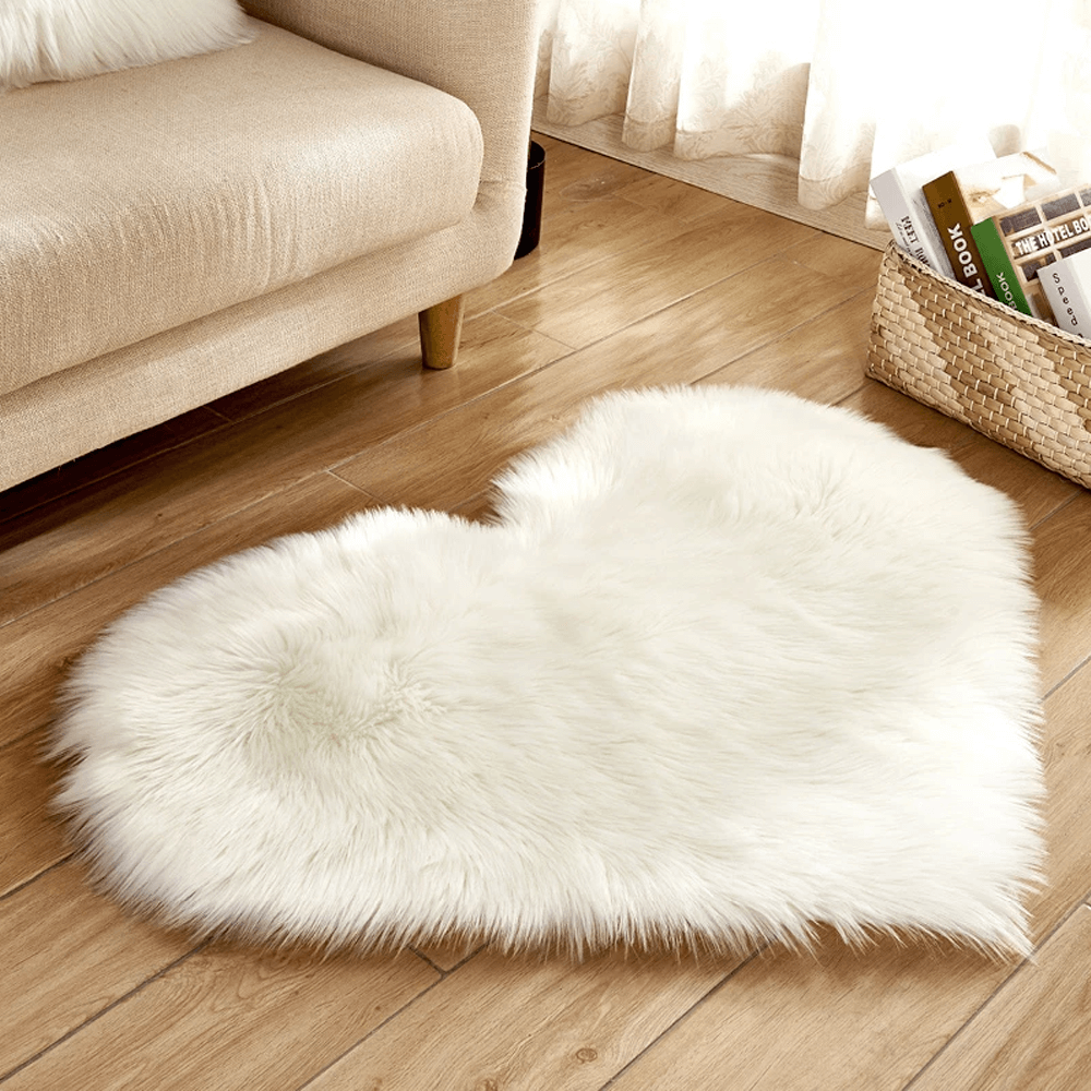 Heart Shaped Area Rug, Plush Faux Fur Carpet For Living Room & Bedroom, Home Decor White