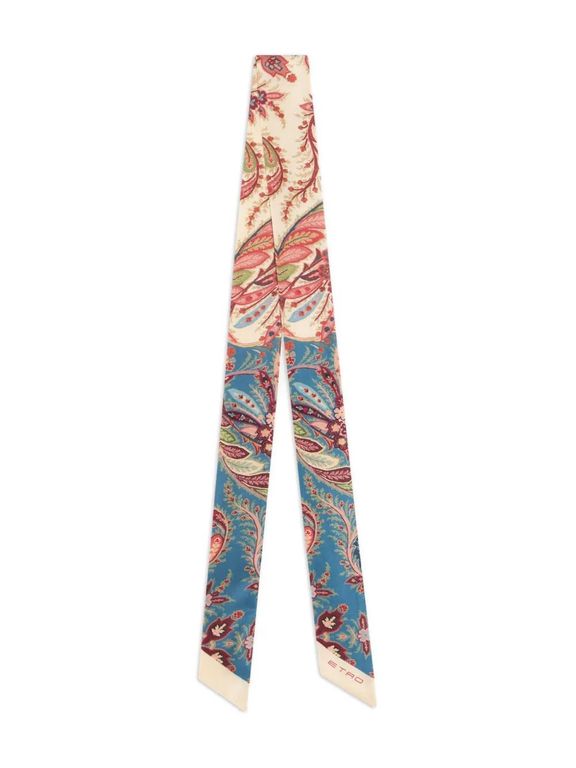 Silk Paisleyina With Placed Print - White - Etro Scarves