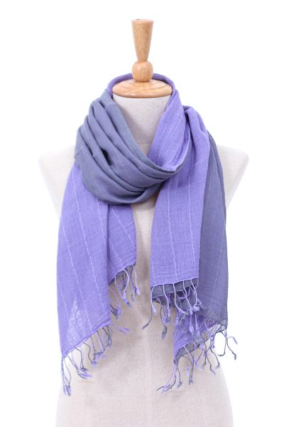 Cotton scarf, 'Purple Duo'
