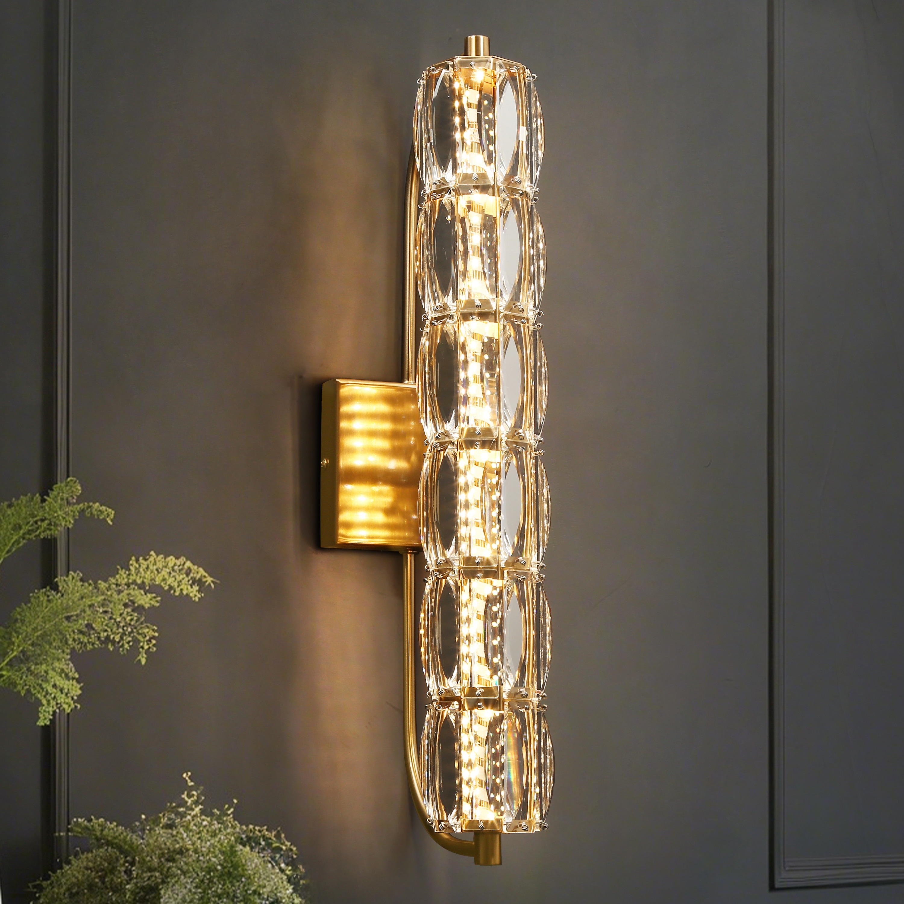 Modern Gold LED 1-Light Crystal Cylinder Wall Sconce Bathroom Vanity Light - Dia. 4.3" x H 19.7"