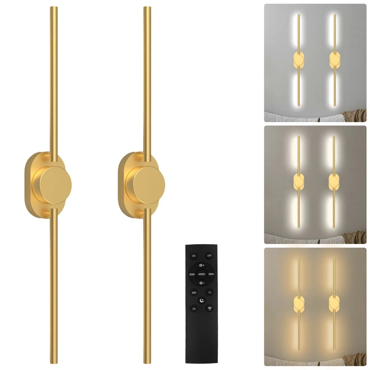 31.5 in. Modern Battery Operated Wireless Wall Sconce, USB Rechargeable Dimmable Wall Light with Remote (Set of 2)