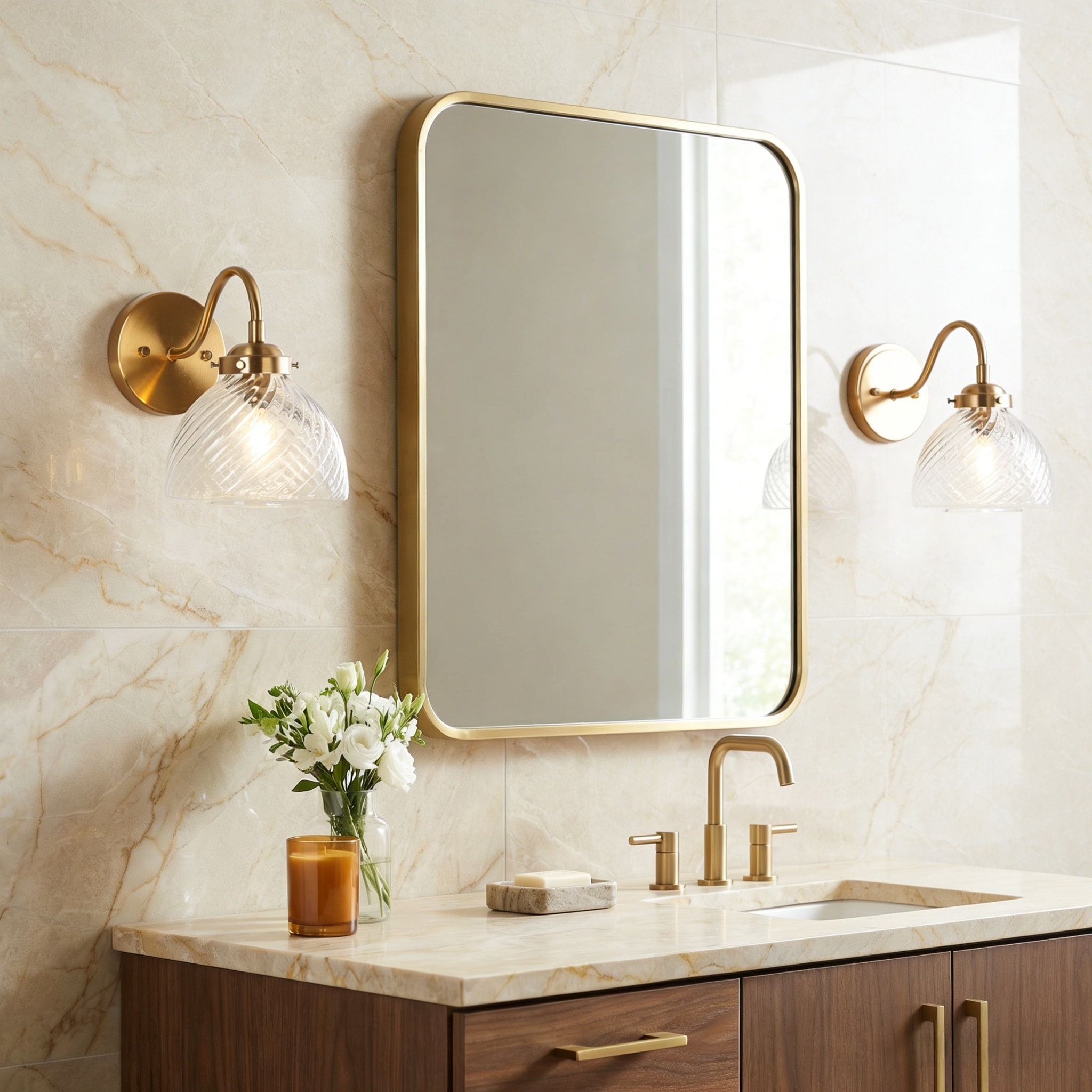 Draki Mid-century Modern Gold Unique Dome Glass Bathroom Light Crooked Vintage Armed Wall Sconce - W 6.7" x H 8.7" x D 10.6"