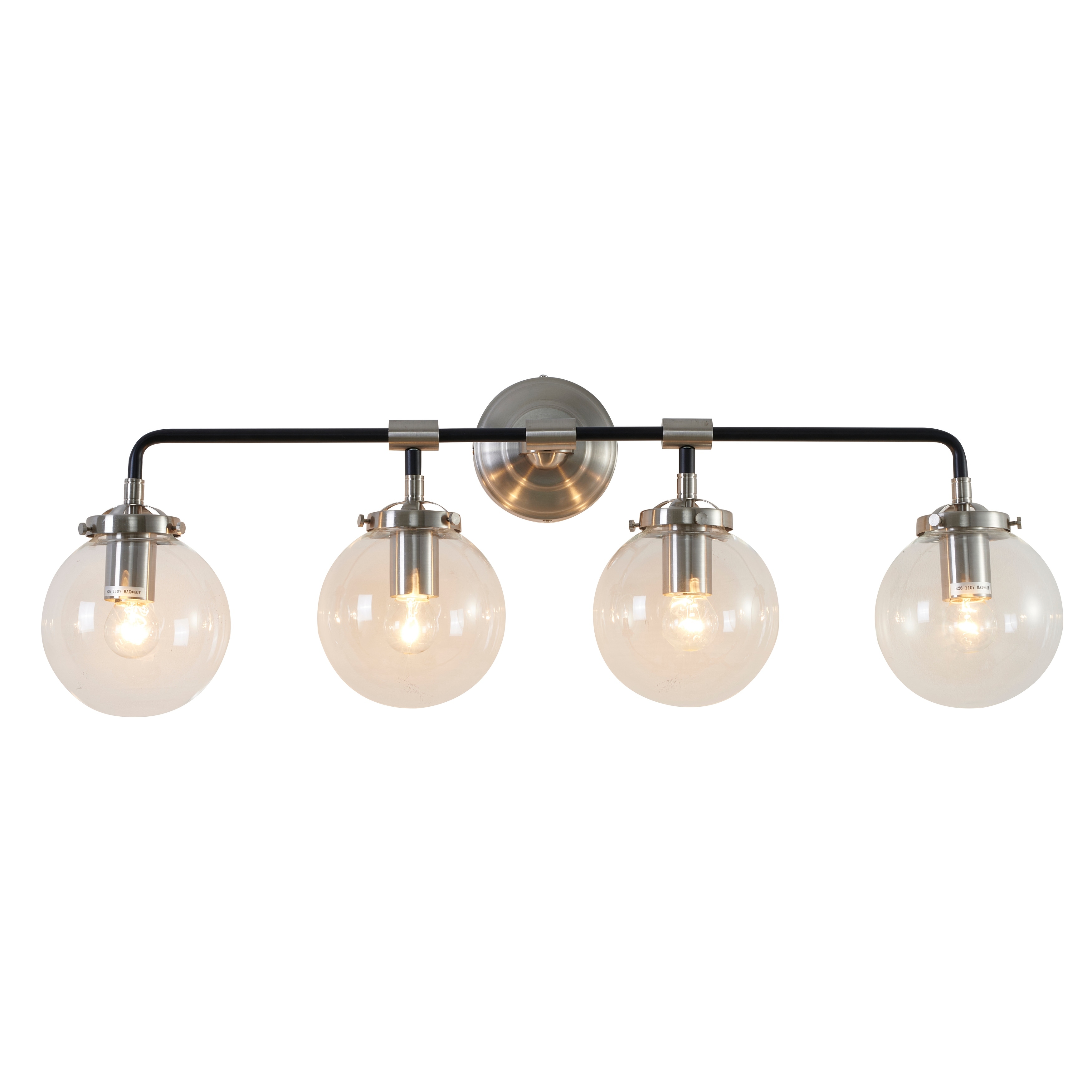 4 Lights Silver and Black Metal Frame Wall Sconce with Glass Shades