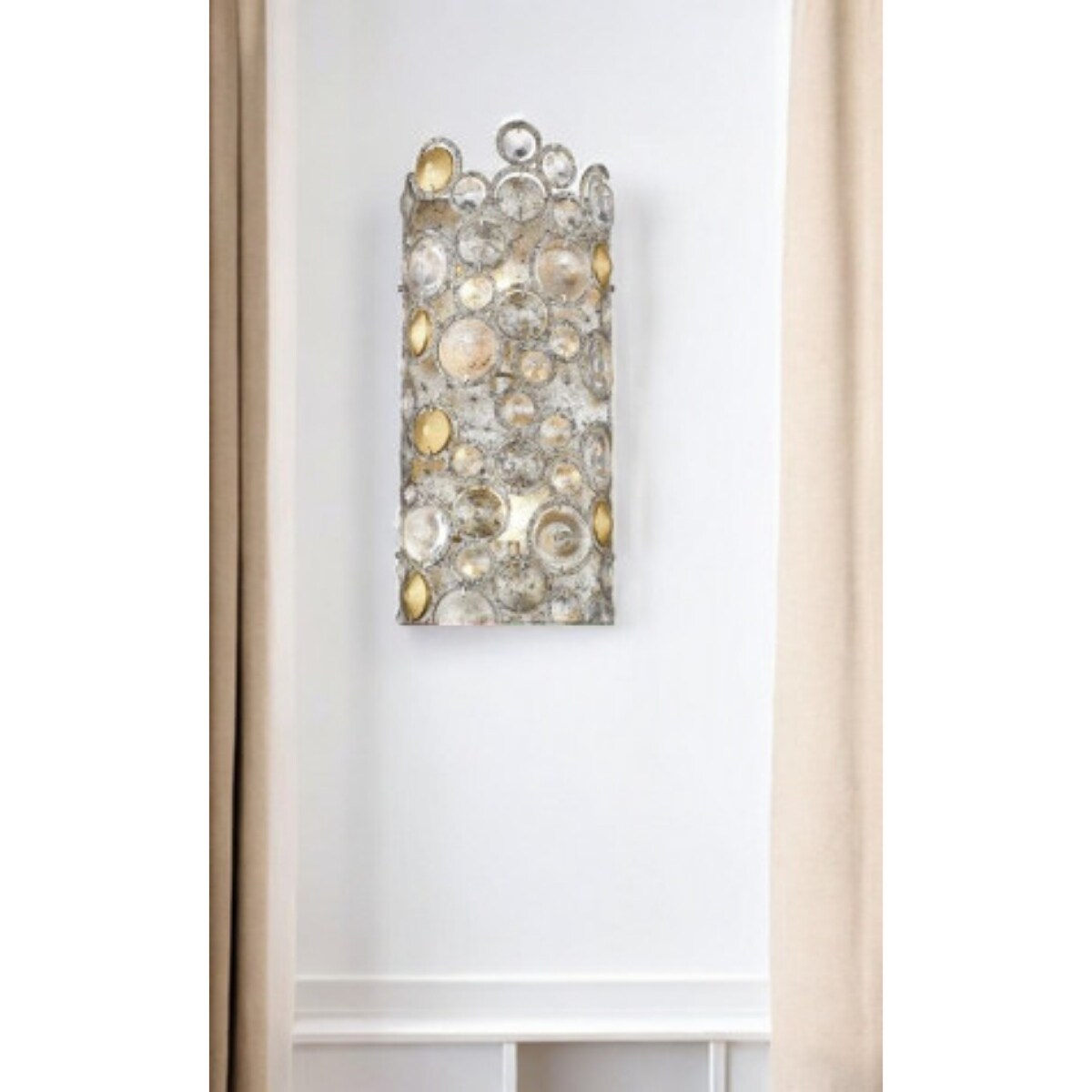 2-Light Transitional Antique Silver Leaf Flush Mount Wall Sconce with Crystal Accents and Dimmable LED Fixture - 18”H x 7.5”W