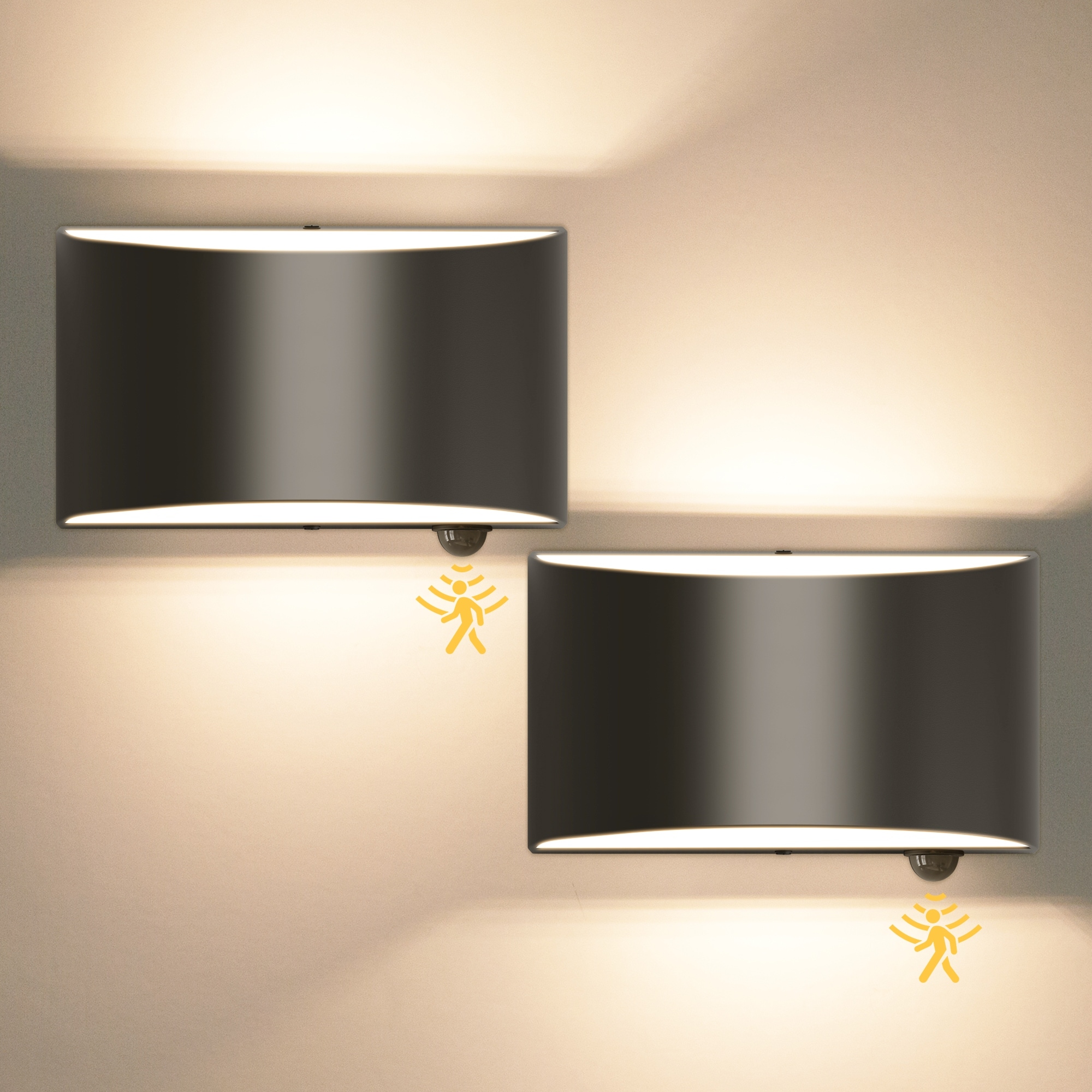 YANSUN 2 Pack Modern Wall Sconce, Black Metal Rectangular Lamp, 12W LED Light, 3000K