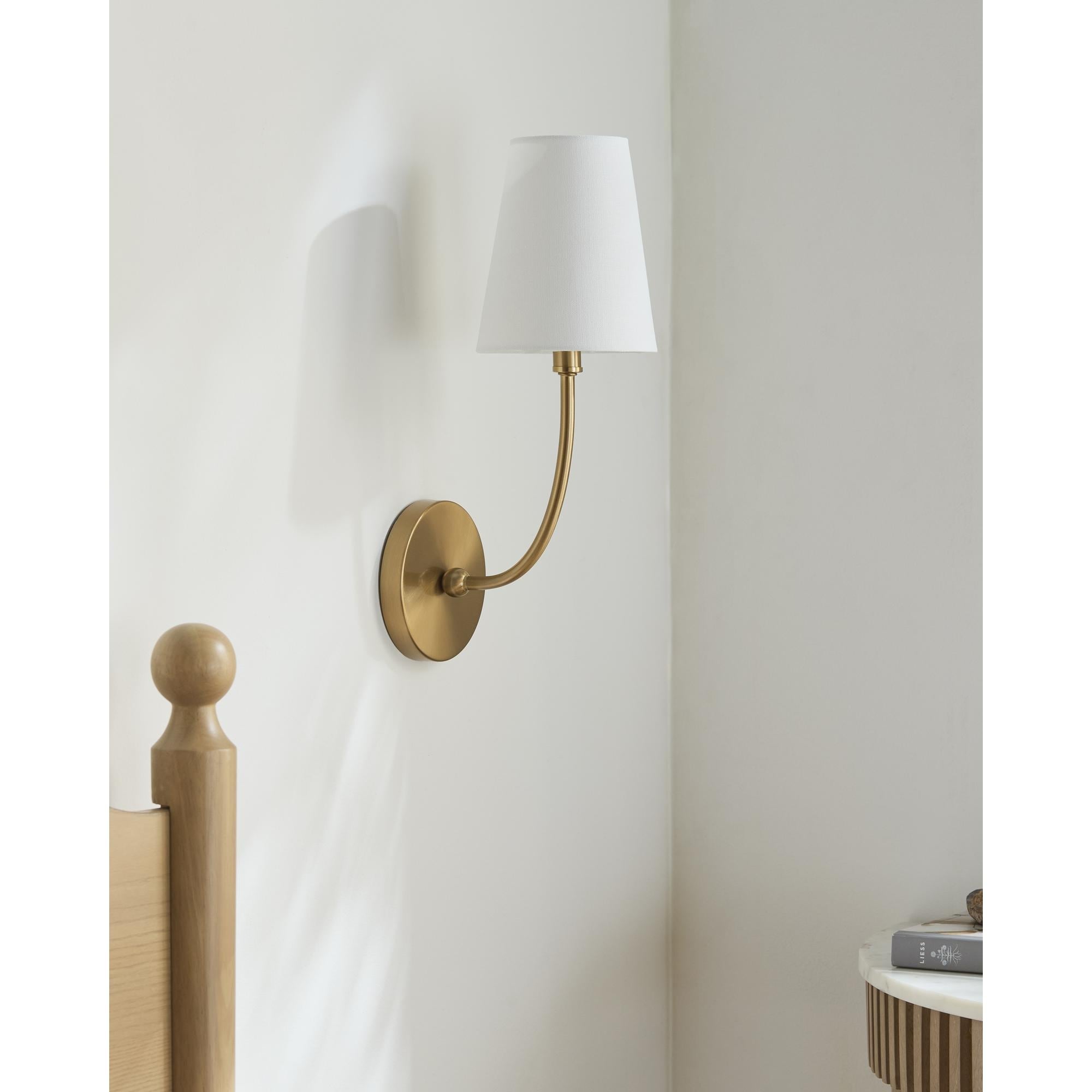 Camden 1 Light Wall Sconce Fixture White Linen Fabric Shade, LED Compatible