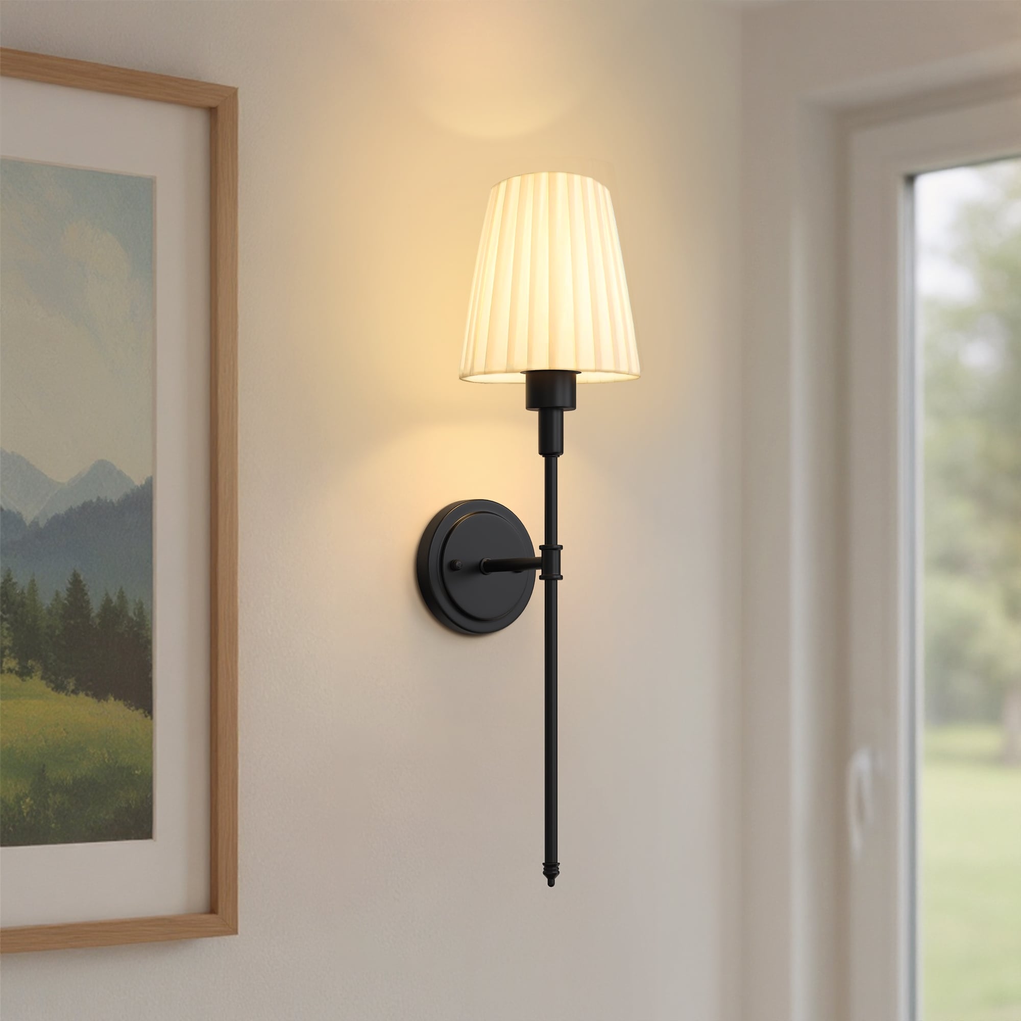 YANSUN Fabric Shade Wall Light Set of 2 with Rechargeable Bulb & IR Remote