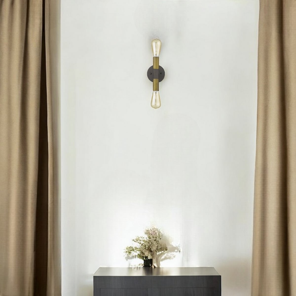 Two-Light Brass and Wood Wall Sconce for Industrial Home Decor - 4” x 4.75” x 8.25”
