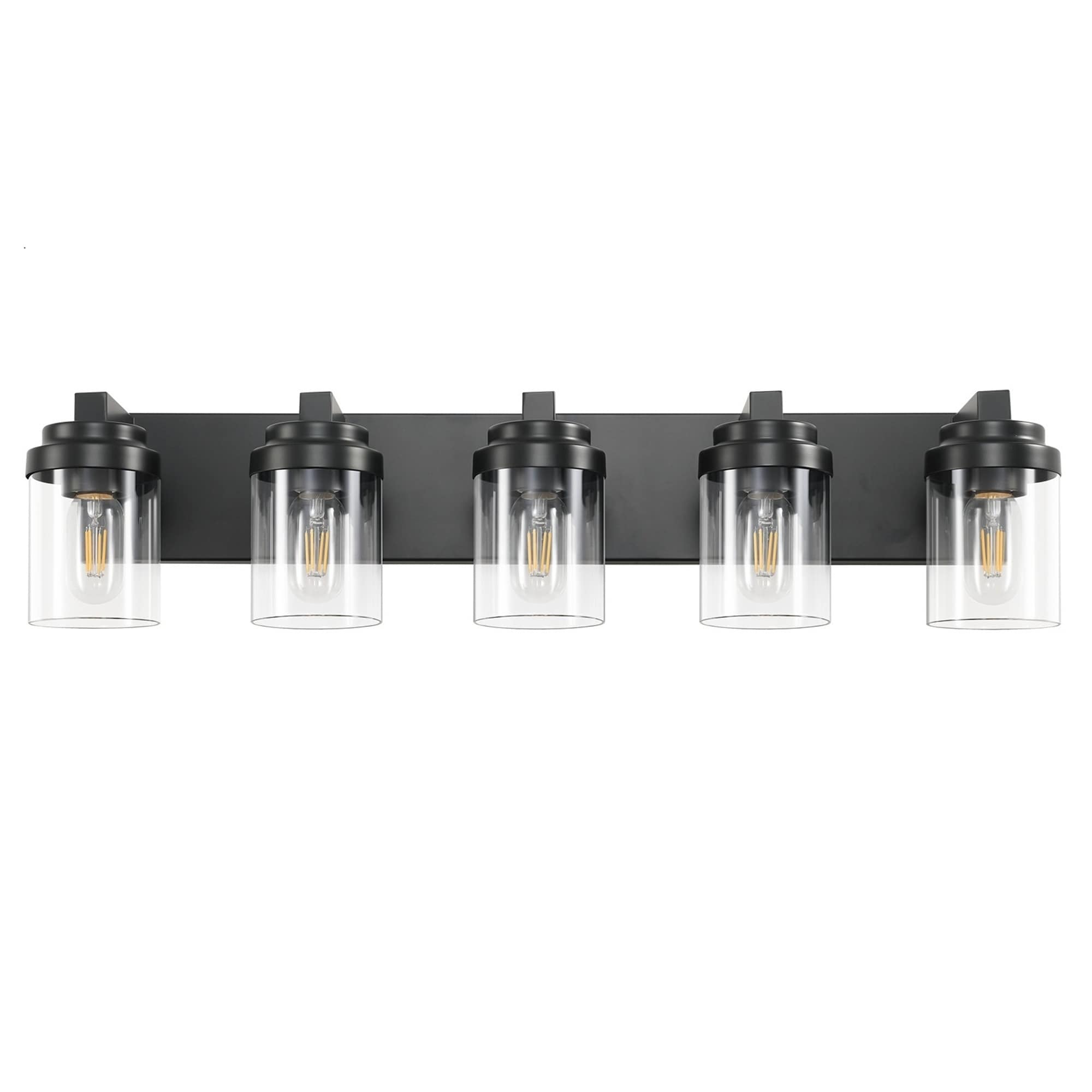30.8 in. 5-Light Matte Black Wall Sconce with Clear Glass Shade
