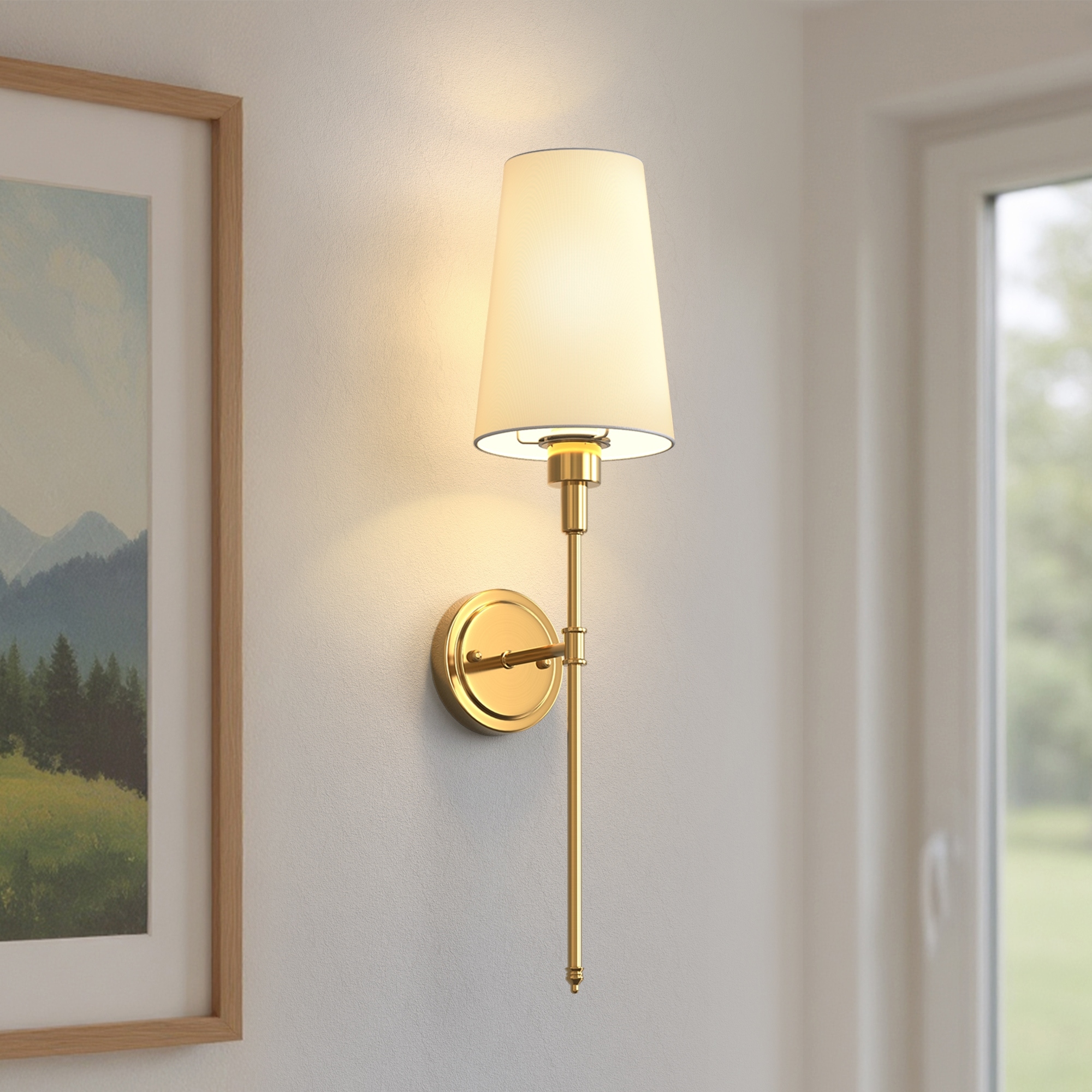 YANSUN 27-inch Fabric Shade Wall Light Set of 2 with Rechargeable Bulb & Remote