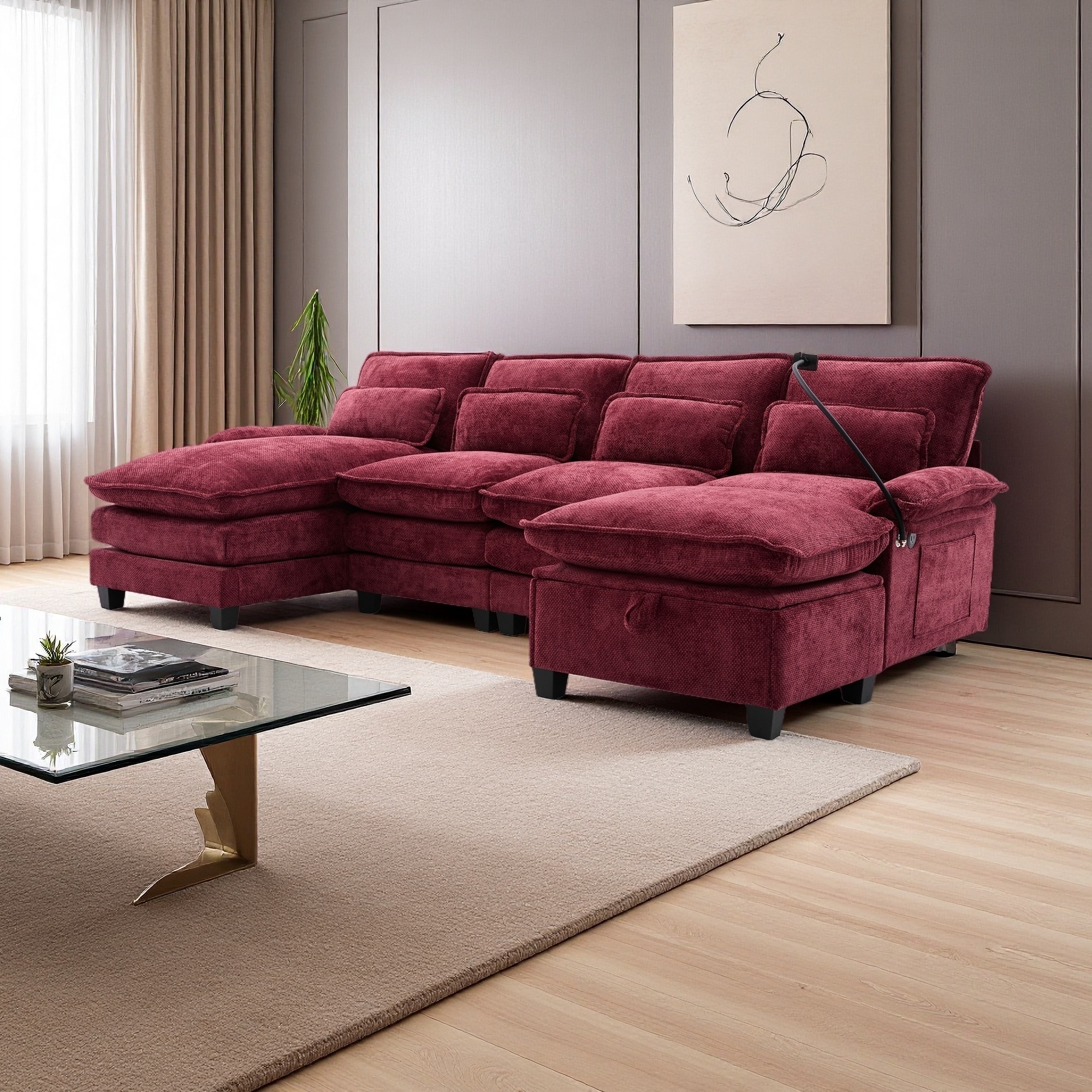 106.69" Chenille U-Shaped Sectional Sofa with Chaise Lounge and Storage Ottoman and USB/Type-C Charging