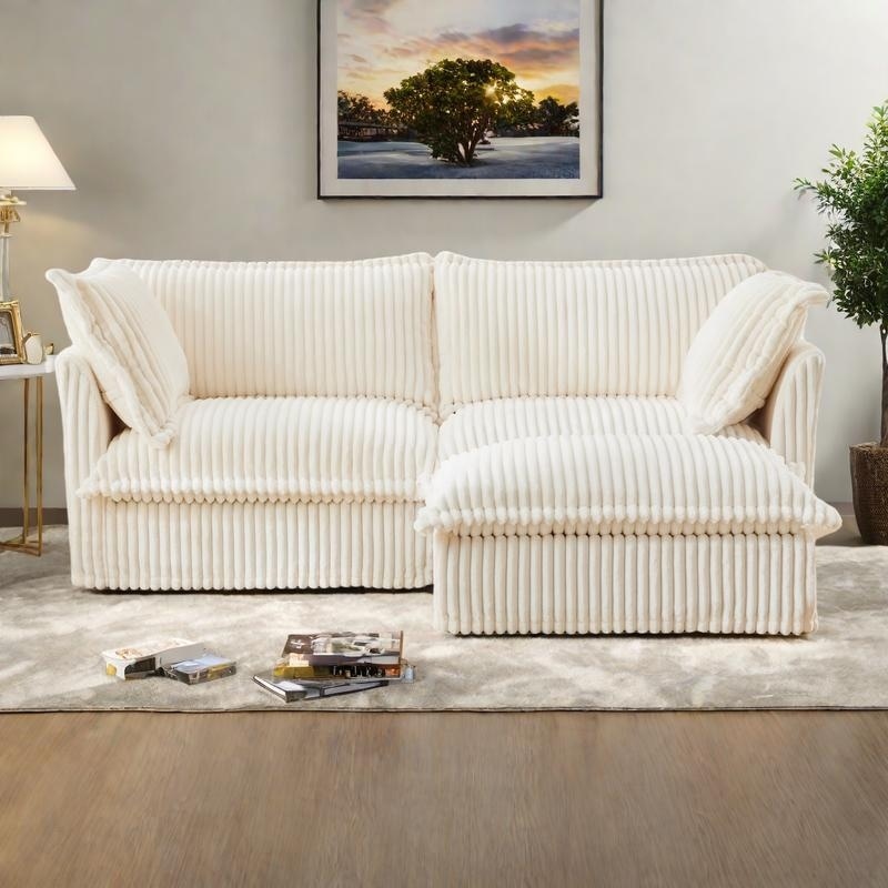 83.4" Corduroy L-Shaped Sectional with Convertible Ottoman and 2-Seater Sofa & Pillows