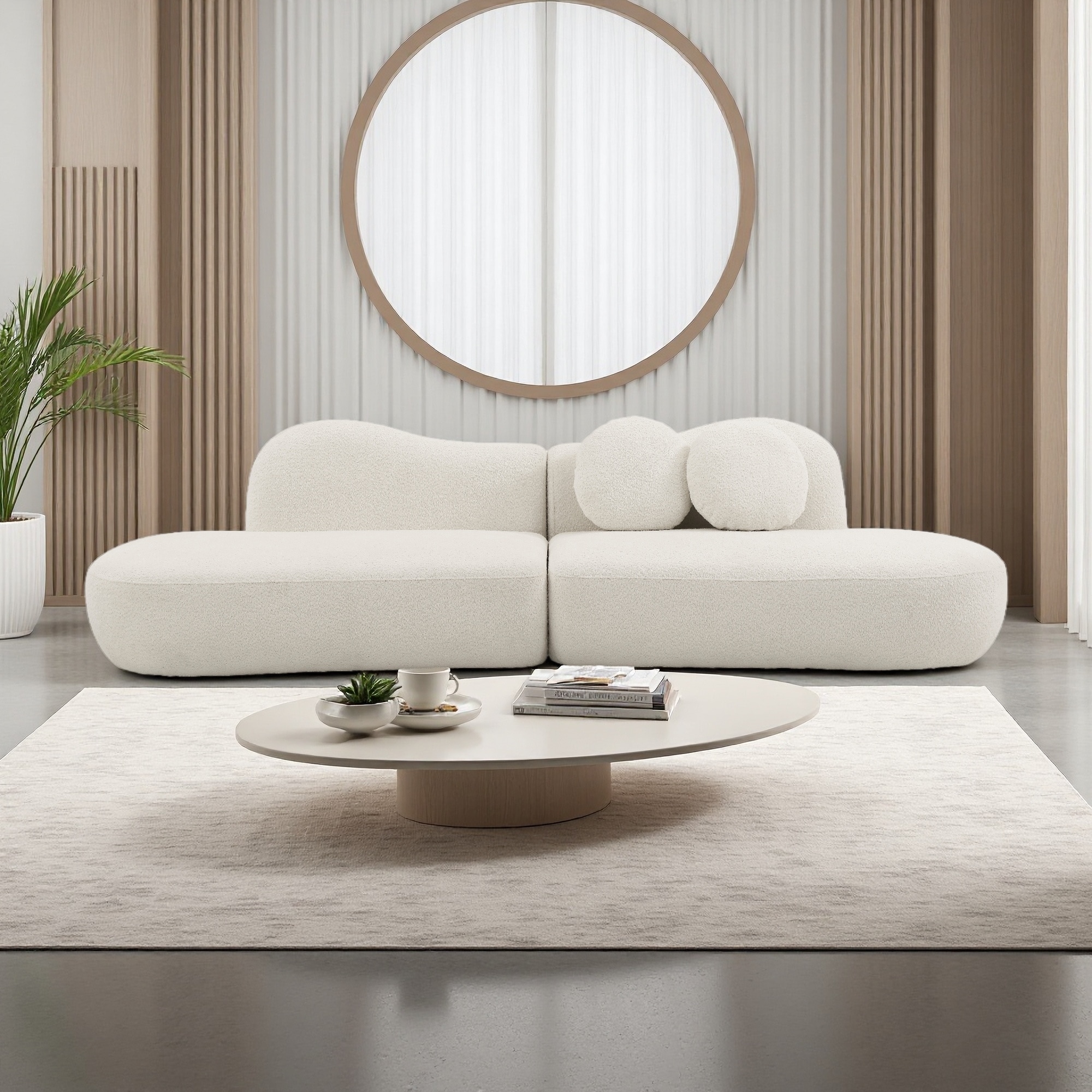 112.2" Boucle Curved 3-Seat Sofa with Butterfly Backrest and 2 Pillows
