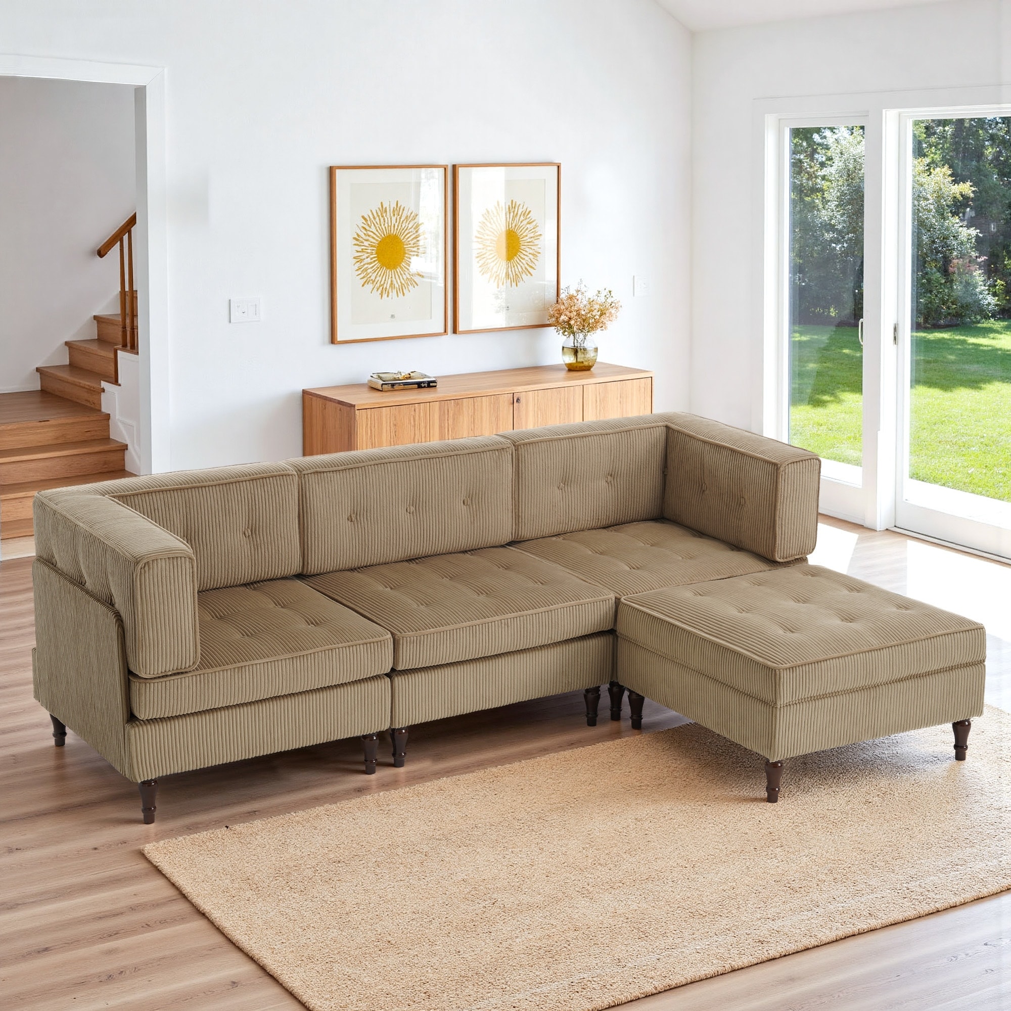 4-Piece Corduroy Sectional Sofa Set Modern Living Room Furniture