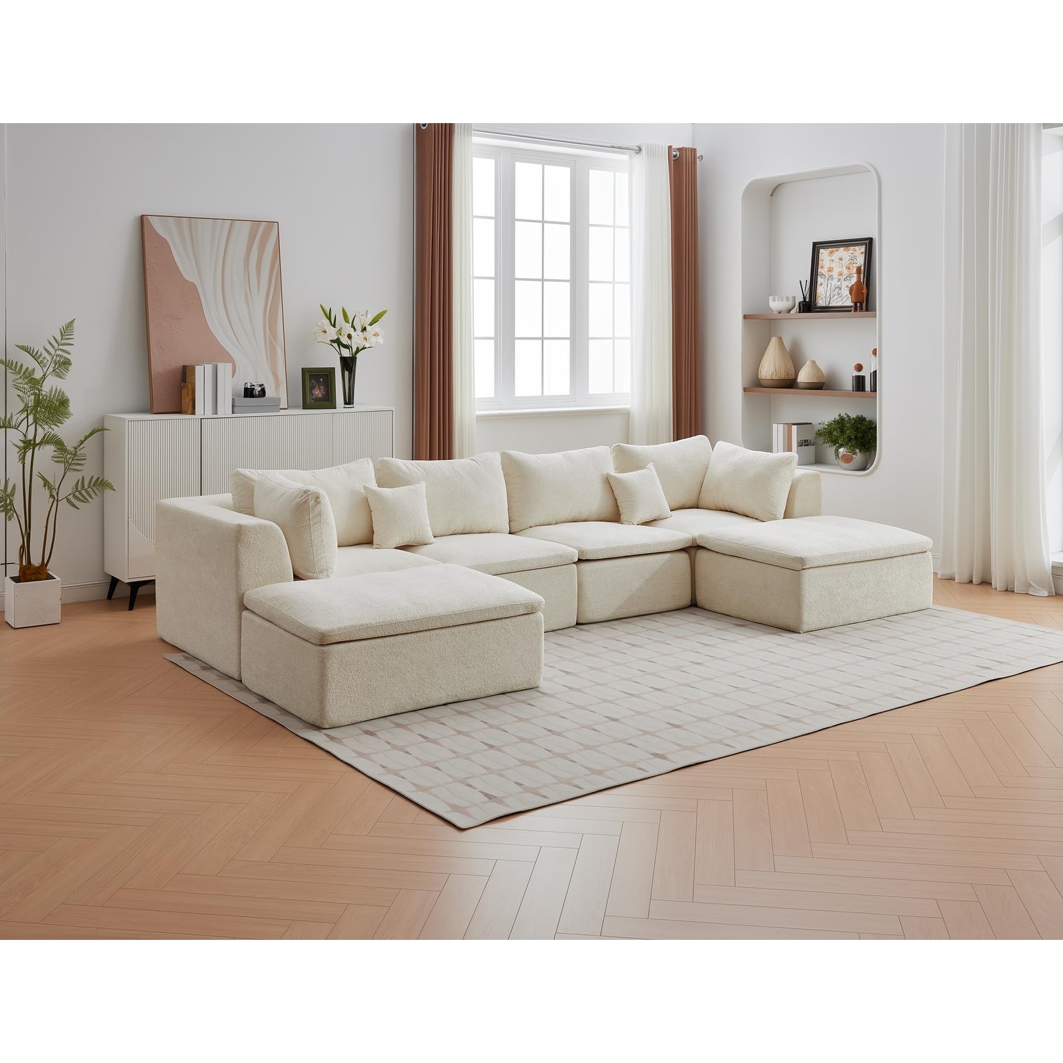 140" U-Shaped Modular Sectional Sofa, 6-Seater Oversized Chenille Couch with Double Chaise, Ottoman & Pillows