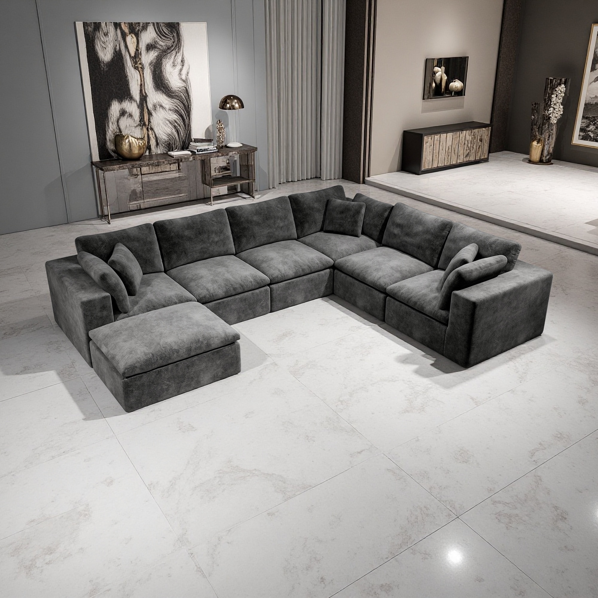 137.8" Corduroy Modular Sectional Sofa with 7-Piece Combination and No Assembly Required (7-Seater)
