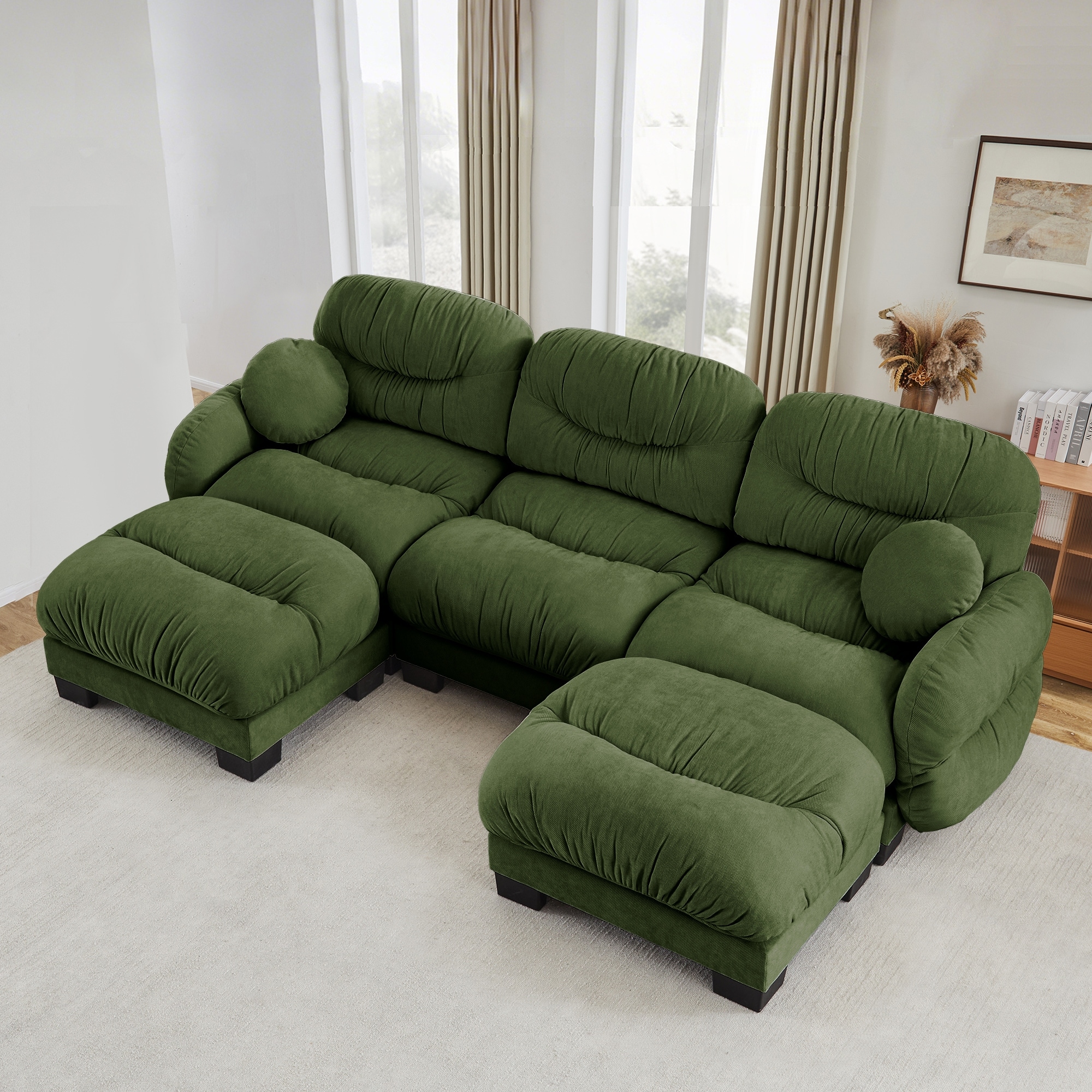 Pleated Chenille Modular Sofa with Ergonomic Foam and Ottomans