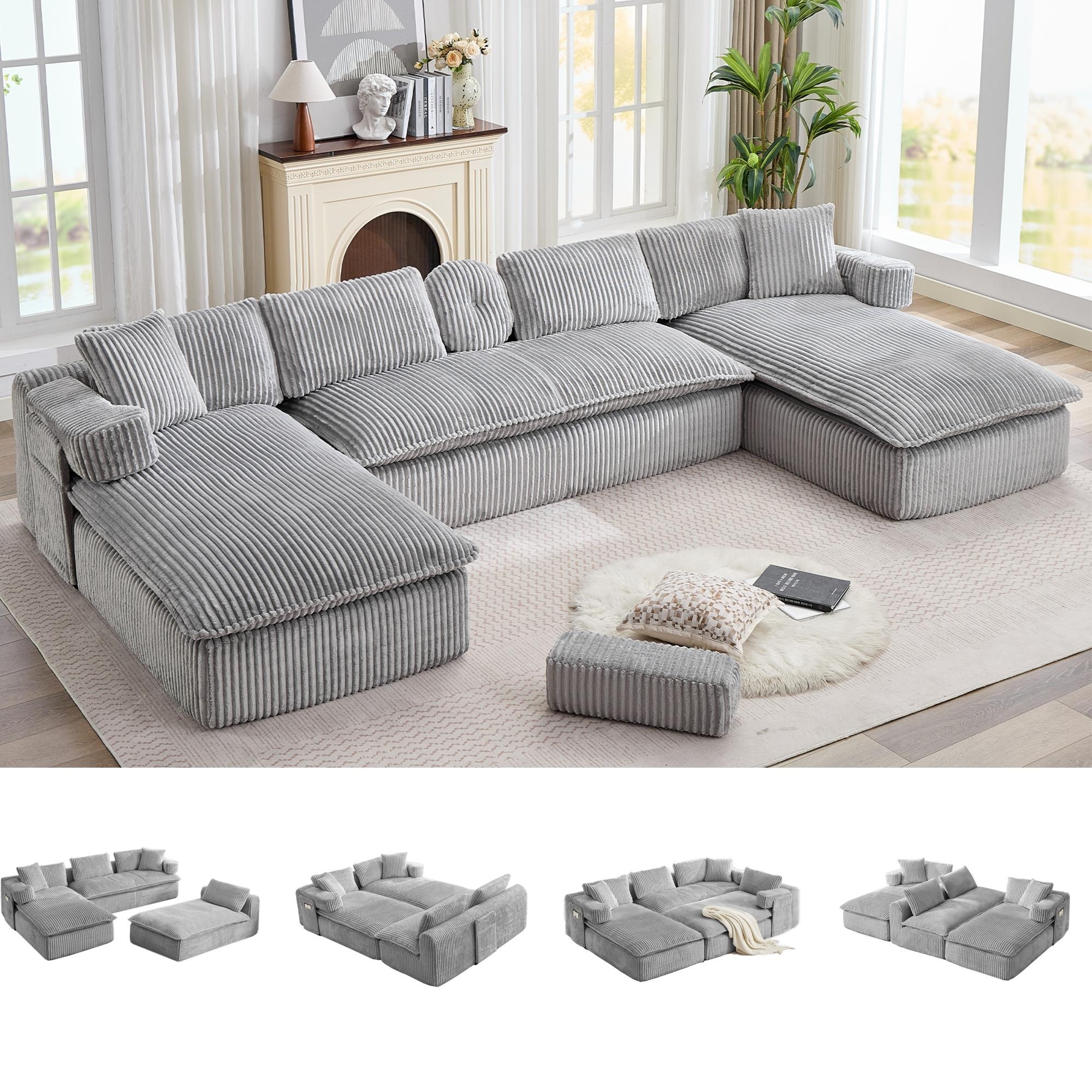 Modern 6-Piece U-Shaped Modular Sofa with Storage & 2 Storage Ottoman