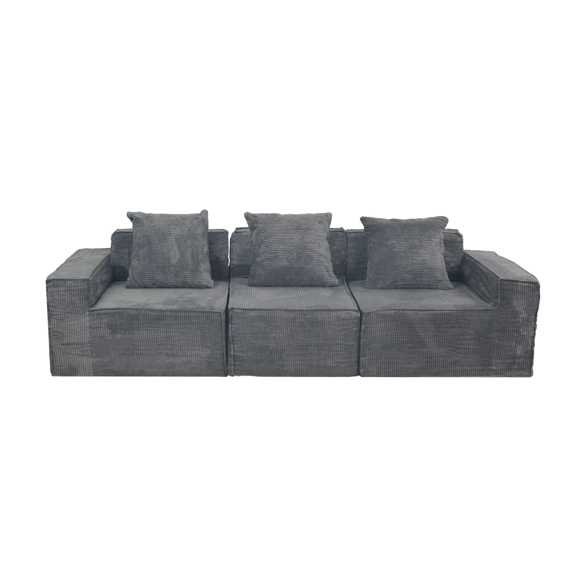 Modular Corduroy Sectional Sofa L Shaped Sofa with Armrests and Right-side Chaise and 8 Throw Pillows for Living Rooms