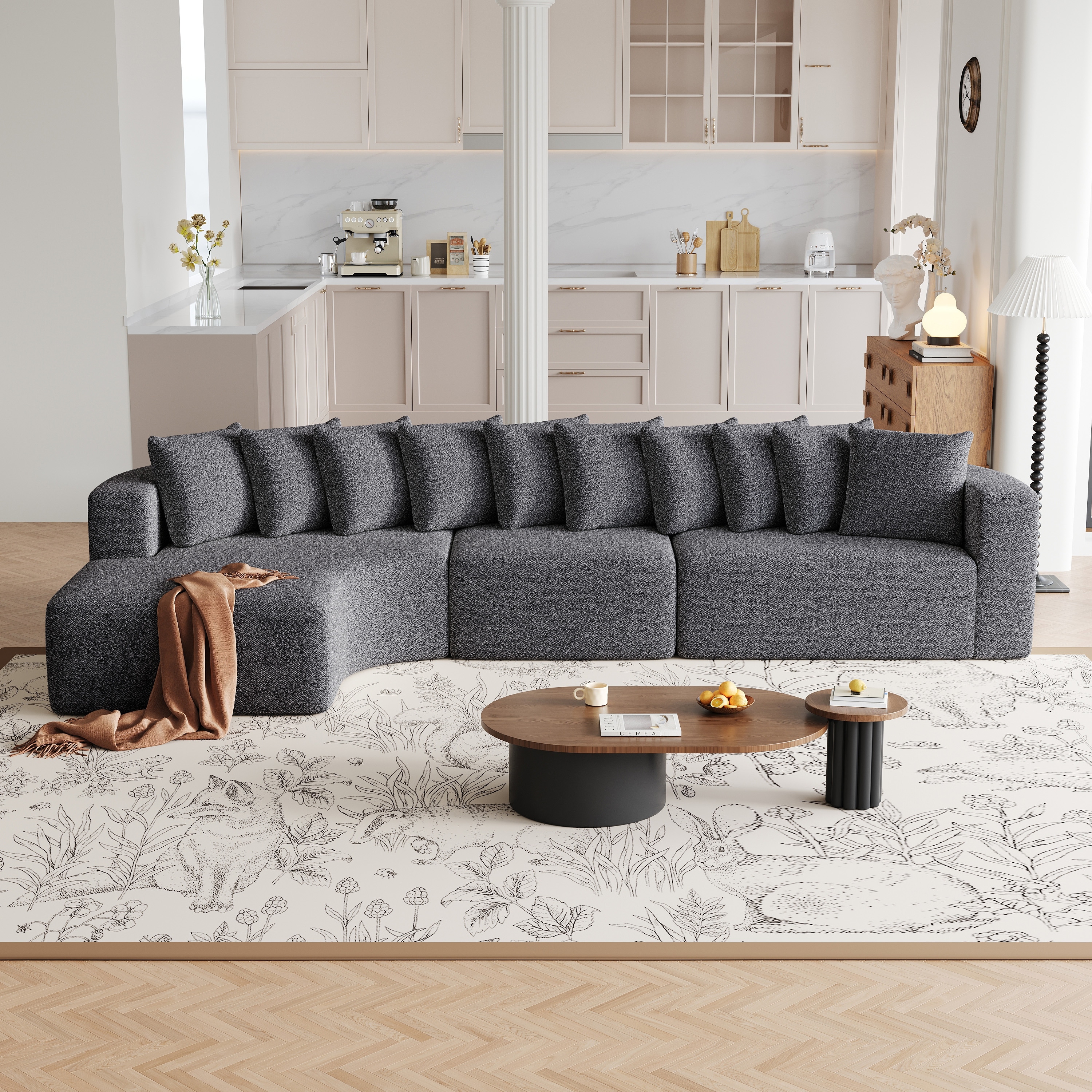 Chenille Sectional Sofa Cloud-Shape Curved Sleeper Sofa with 10 Pillows, Living Room Corner Recliner Sofa, L-Shaped Modular Sofa