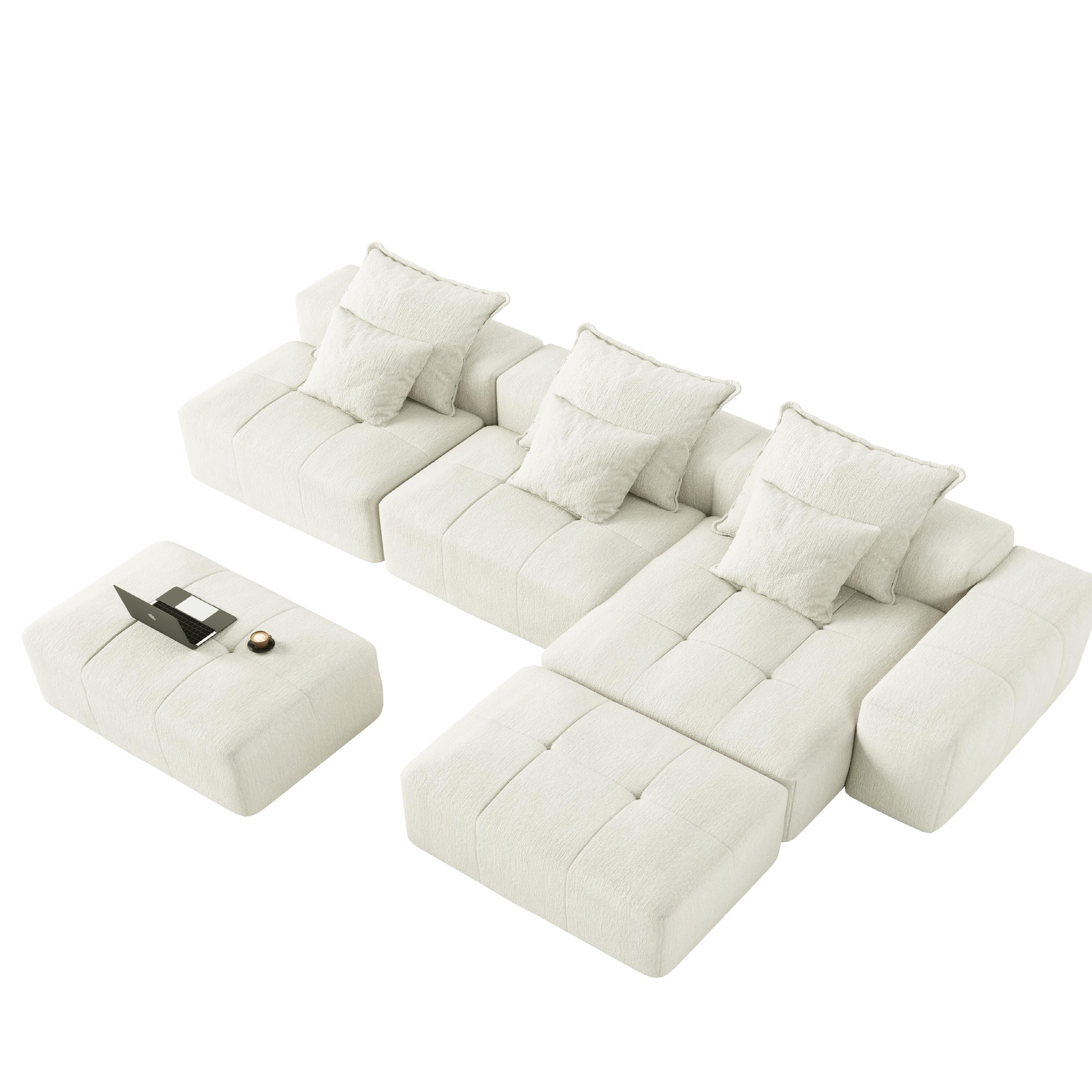 U-Shaped Sofa Set with 2 Movable Ottoman Chenille Modular Sectional Couch 5-Seat Cloud Upholstered Sofa with Side Storage