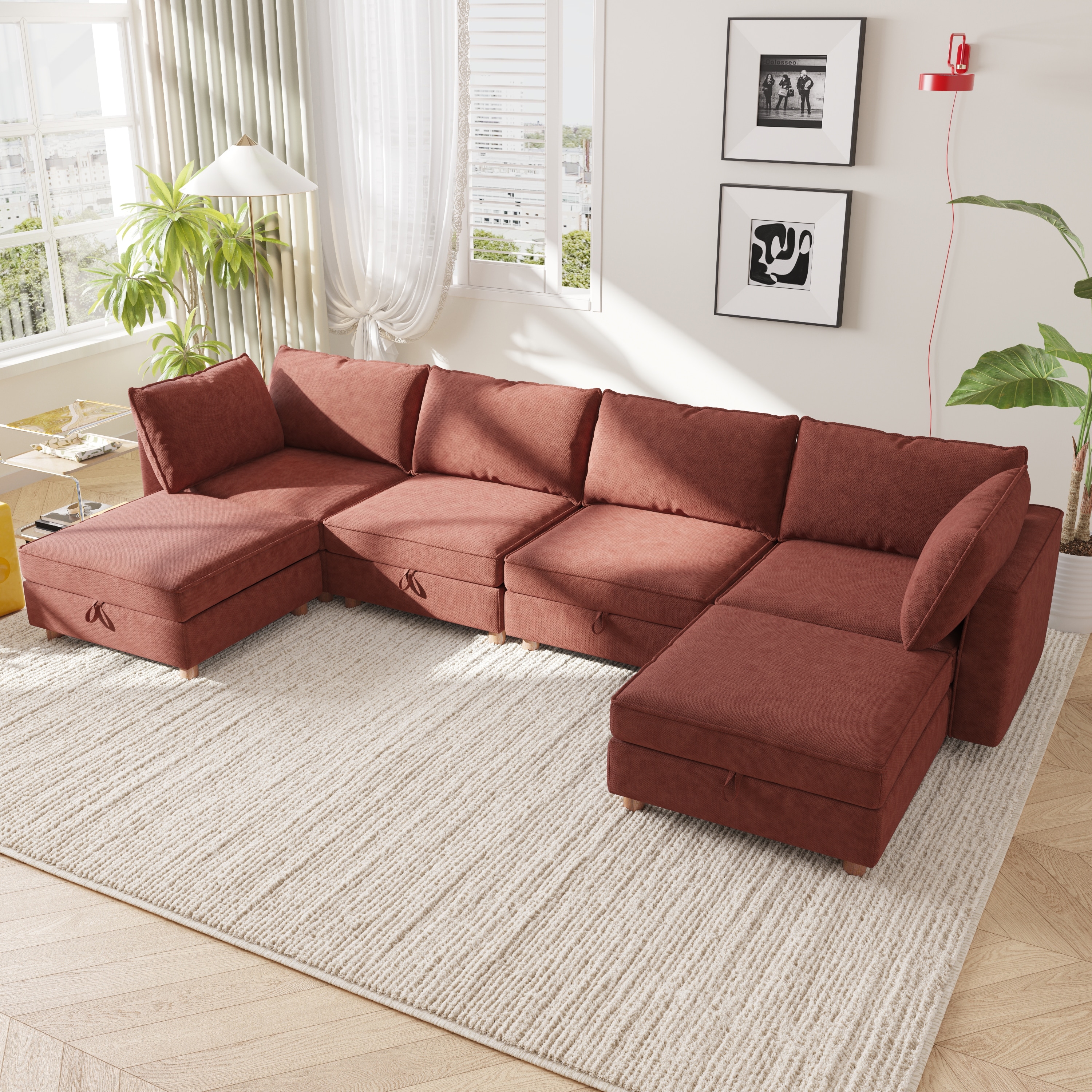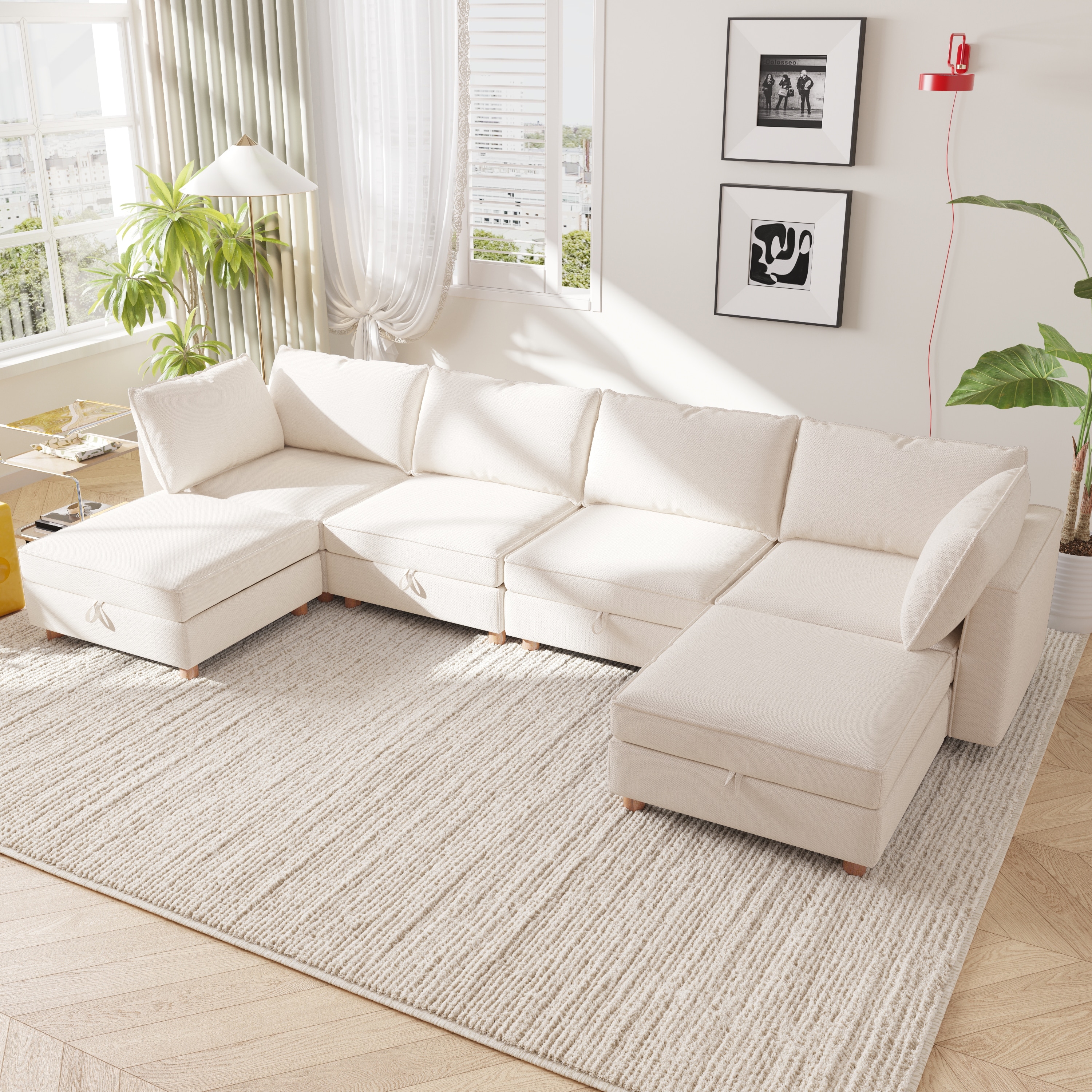GDFStudio - Waterproof Fabric 6-Seat 127.56" Modular Sectional Sofa with Storage & Solid Wood Frame