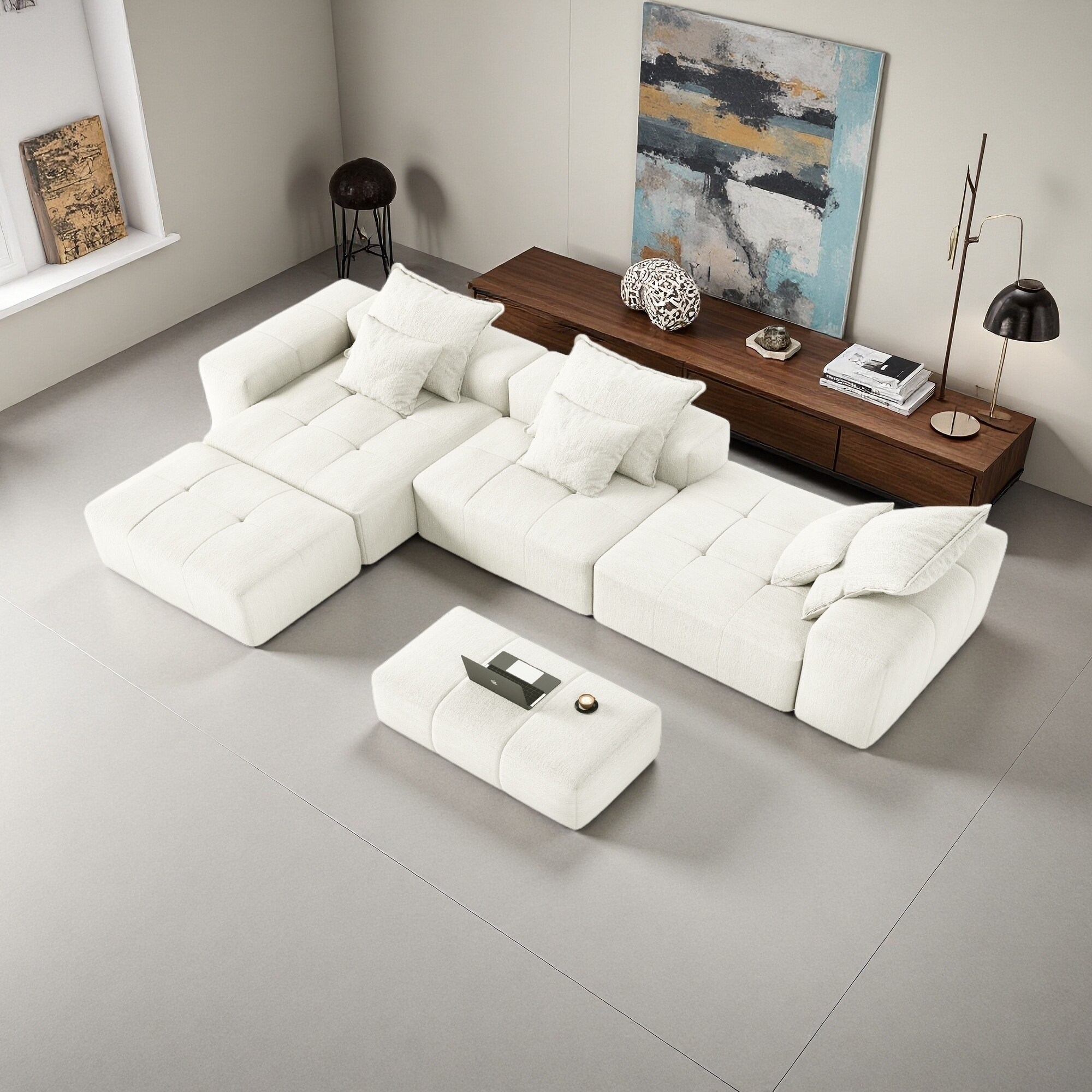 4-Seat Modular Sofa,Oversize Deep Seat Sectional Couch with 2 Ottomans