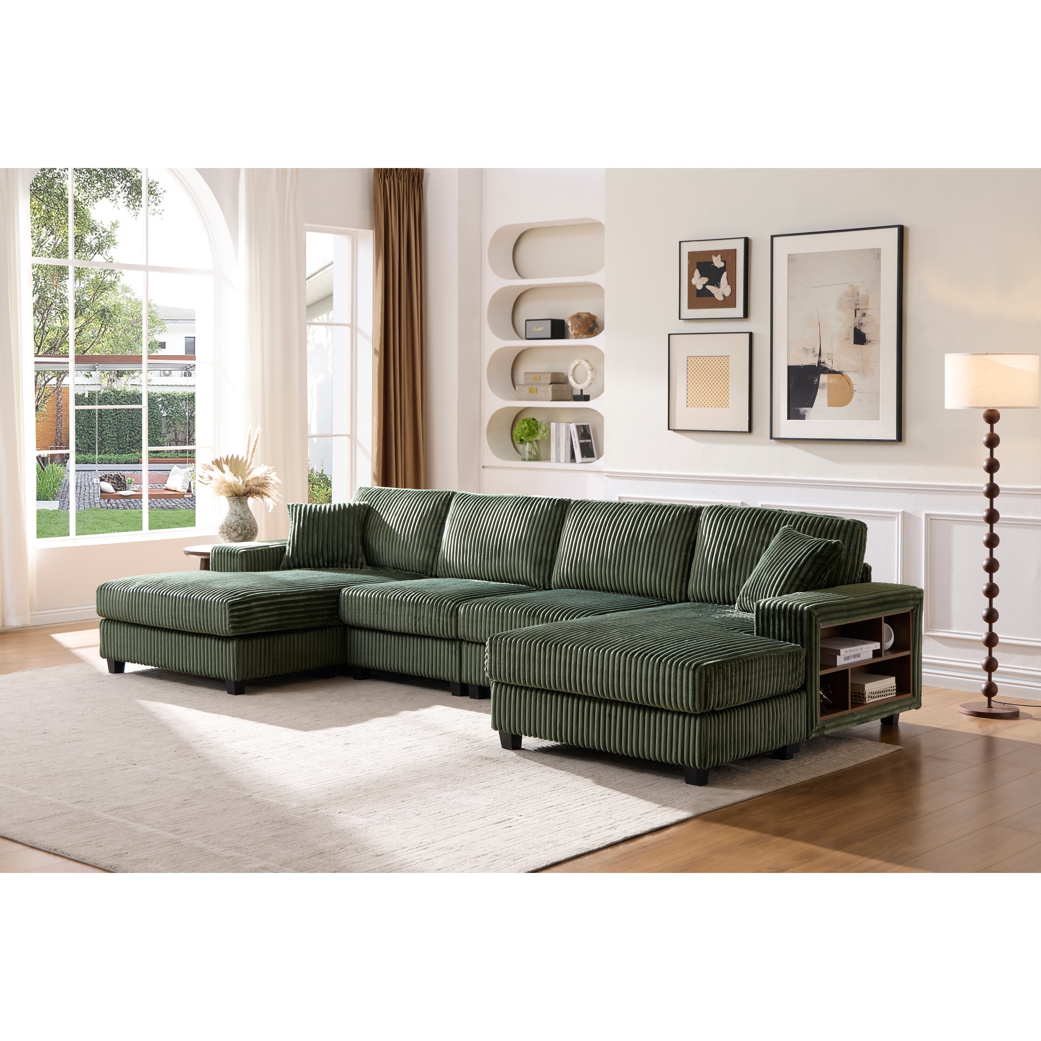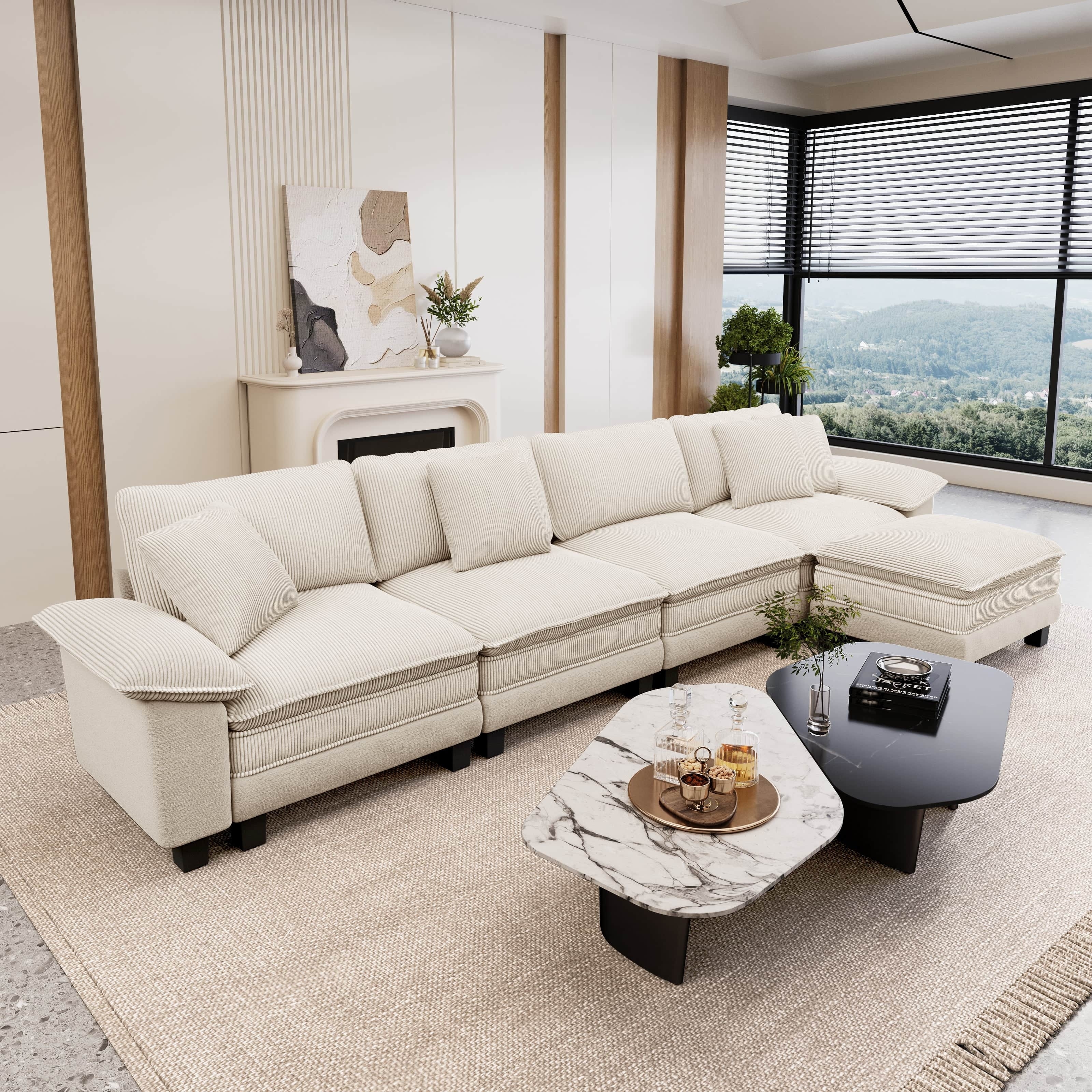 Modular Sectional Sofa with Dual Chaise Lounges, Corduroy Cloud Sofa with Armrest Storage Rack, Convertible 4-Seat Sleeper Sofa